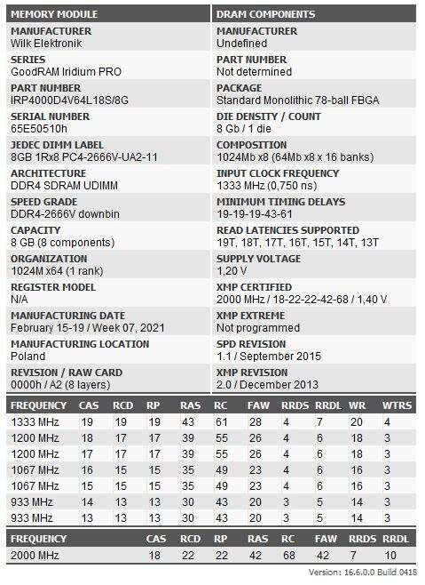 Niestety żaden z programów nie był w stanie odczytać kto jest producentem samych kości pamięci. Natomiast otrzymałem od producenta informację, że są to kości SK Hynix D-Die. Warto też zauważyć, że na platformie testowej włączony był Gear 2, czyli kontroler pamięci działał z połową wartości częstotliwości pamięci. Niestety Gear 1 przy takim taktowaniu jest niemożliwy do włączenia.