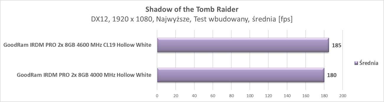 Po podniesieniu napięcia do 1,5 V, bez ruszania opóźnień, pamięci stabilnie działały na 4200 MHz. Natomiast po obniżeniu timingów do 19-25-25-45 udało się osiągnąć stabilne 4600 MHz, co przełożyło się na wzrost wyników w testach.