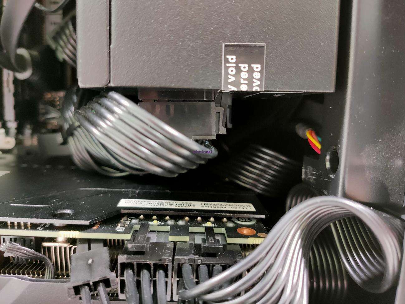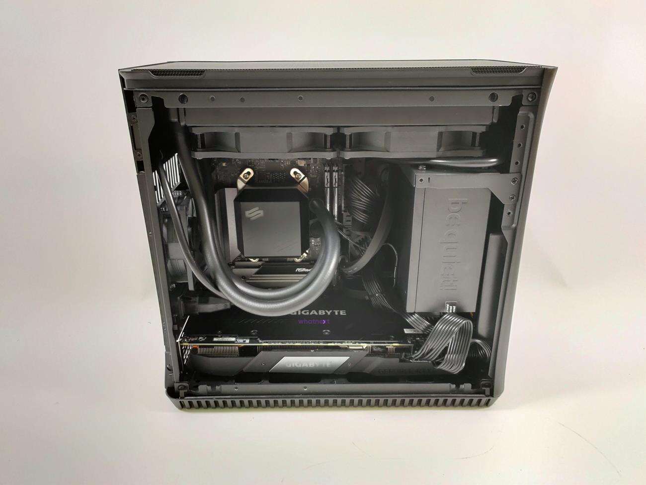 Podczas składania nie obyło się bez problemów. Głównie zawinił tutaj jednak zbyt duży zasilacz. Przy tak długiej karcie graficznej nie może on być zamontowany najniżej jak się da, bo zwyczajnie nie ma miejsca. Trzeba go trochę podnieść, co zmniejsza ilość miejsca na AiO. W moim przypadku wszystko weszło na styk, niestety zupełnie nie ma miejsca na okablowanie. Nie można go przerzucić na tył, bowiem bok Wam się nie domknie, stąd lekki bałagan w okolicach zasilacza.