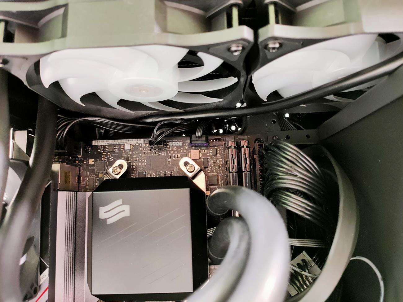 Poza tym jakichś większych trudności nie było. Trzeba by jeszcze poświęcić trochę czasu na ogarnięcie okablowania, choć miejsca na nie nie widzę. Tutaj ponownie wadą jest trochę zbyt duży zasilacz oraz bardzo długa karta graficzna. Uważajcie też na backplate dołączane do AiO – w moim przypadku to z chłodzeniem nie pasowałoby na płytę, musiałem wykorzystać dołączone do niej (nie ma z tym jednak żadnych problemów). Pamiętajcie też, że warto przed montażem przeczytać instrukcję od obudowy – jest tam zaprezentowanych kilka ciekawych rozwiązań, które mogą ułatwić budowanie komputera.