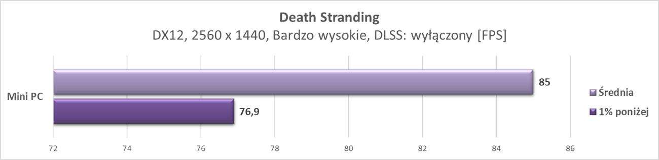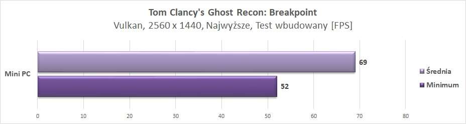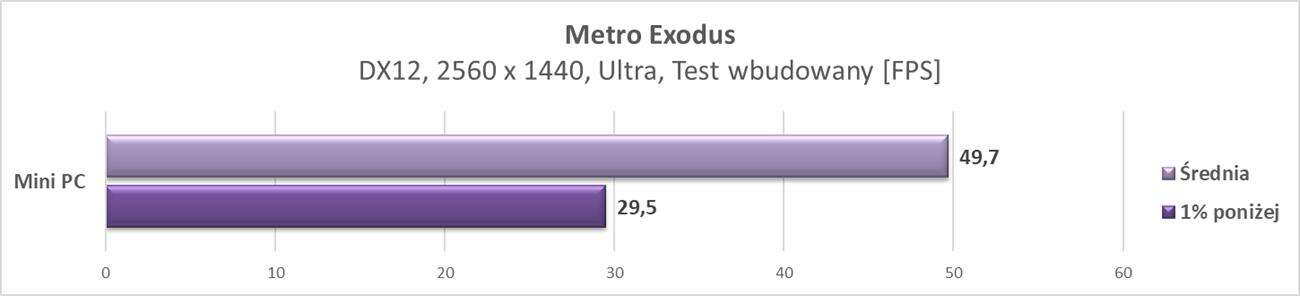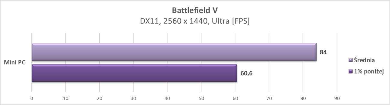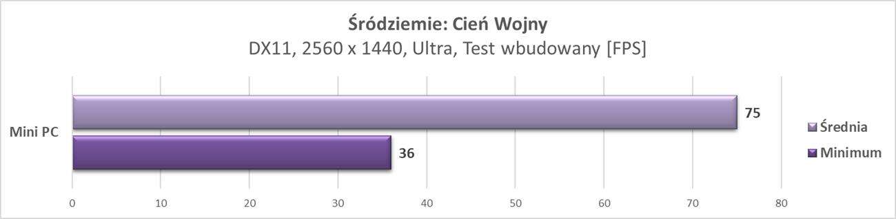 W rozdzielczości 2560 x 1440 px mini PC również radzi sobie znakomicie. Jest już jednak część gier, która notuje poniżej 60 fps, ale nadal są one płynne. W większości gier jest jednak nadal ponad 60 fps, więc do tej rozdzielczości taka konstrukcja również świetnie się nadaje.