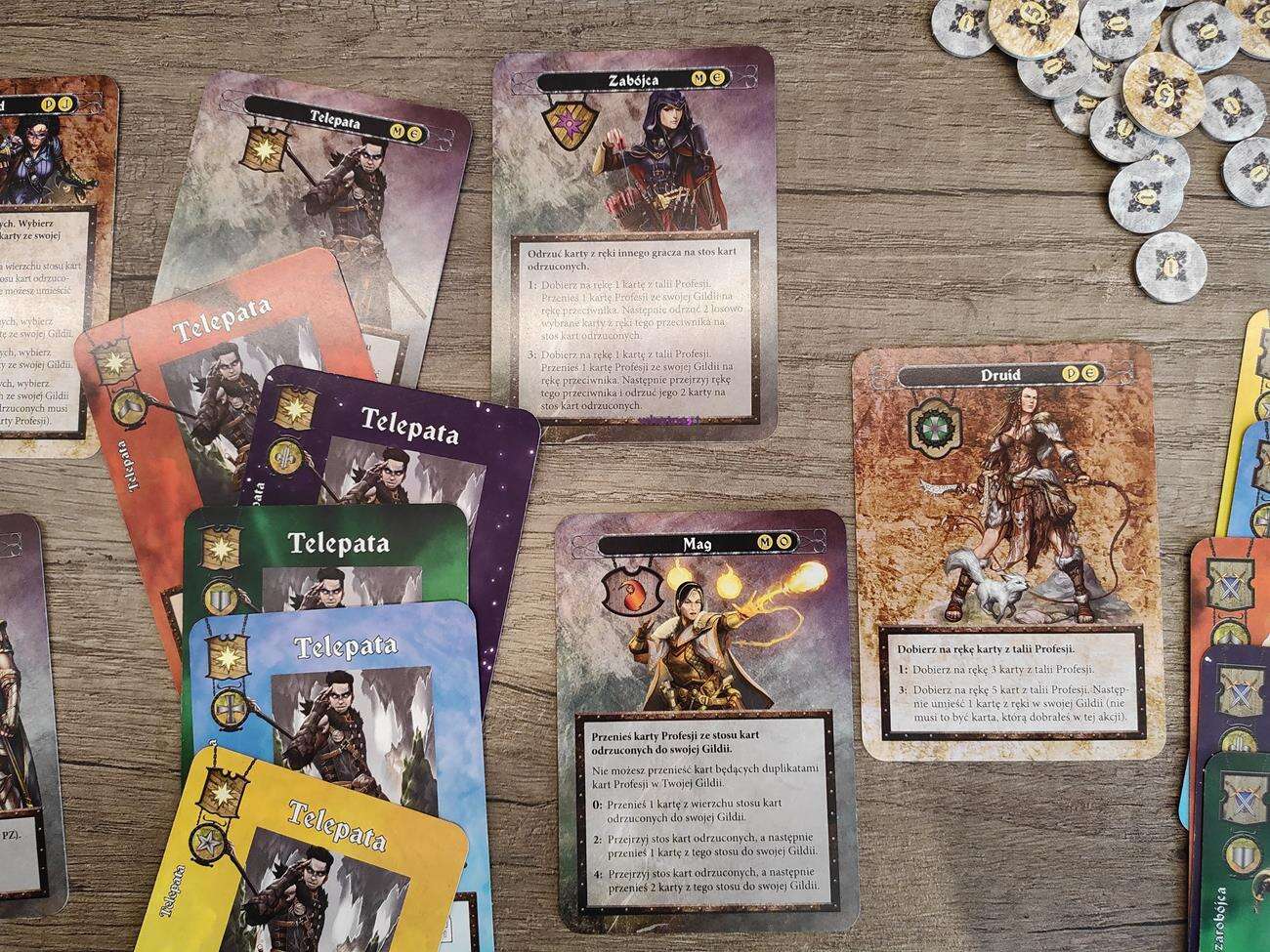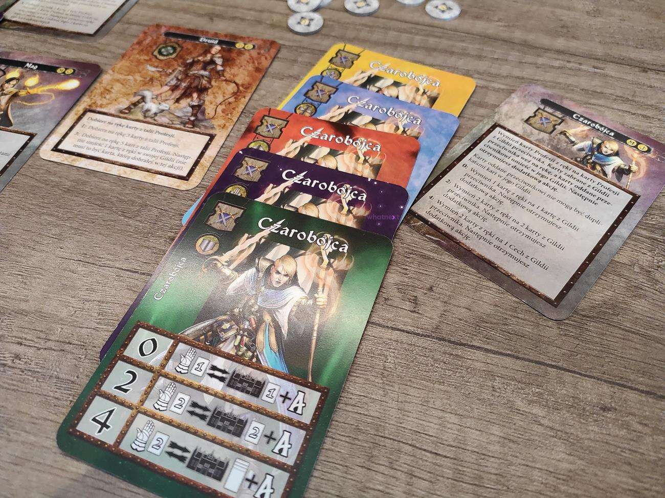 Największy minus? Spore zapotrzebowanie na miejsce, ale wynagradza to złożenie, możliwość kombinowania i ciekawa mechanika, w ramach to której im więcej kart mamy danego cechu w gildii, tym umiejętności zagrywanych postaci są mocniejsze. Dodatkowo świetne jest to, że możemy wpływać na formę gry (po prostu usuwając dane karty z talii).