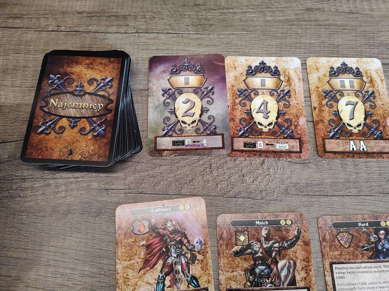 Warto jeszcze rozwiać wątpliwość co do tego, jak Najemnicy funkcjonują pod kątem zestawów. Chociaż do zabawy wystarczy nam tylko jeden zestaw (np. z podtytułem Parszywa Drużyna, Nieświęte Przymierze oraz Magią i Mieczem), to możemy dowolnie je łączyć (mieszając ze sobą karty). Uważałbym jednak na liczbę kart postaci, bo przy 360 może nam się zakręcić w głowie. Osobiście polecam z kolei połączenie Magii i Miecza wraz z Parszywą Drużyną.