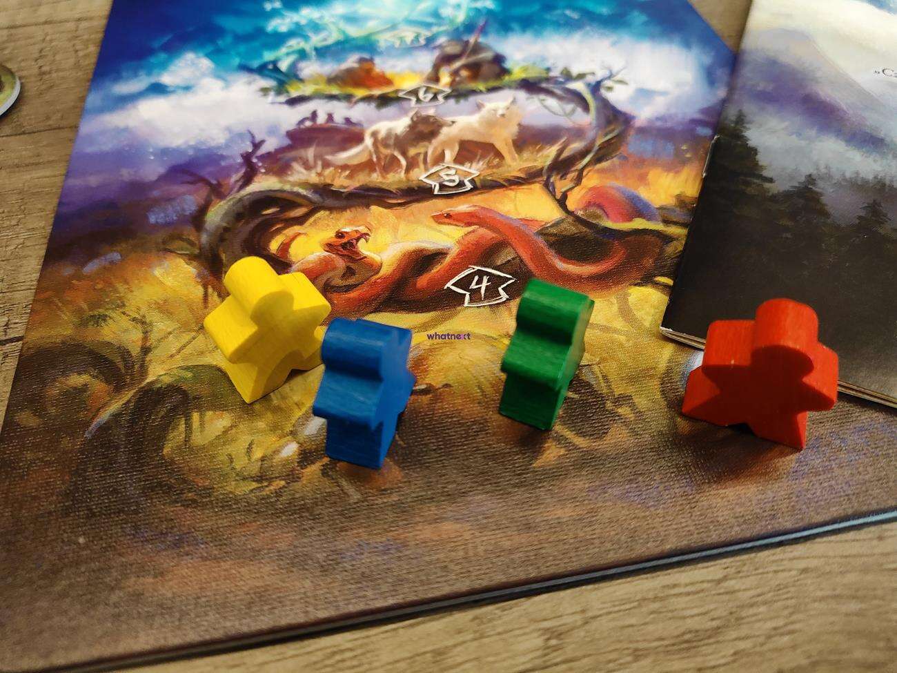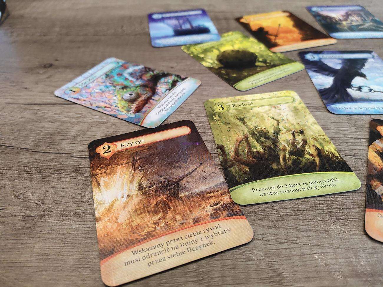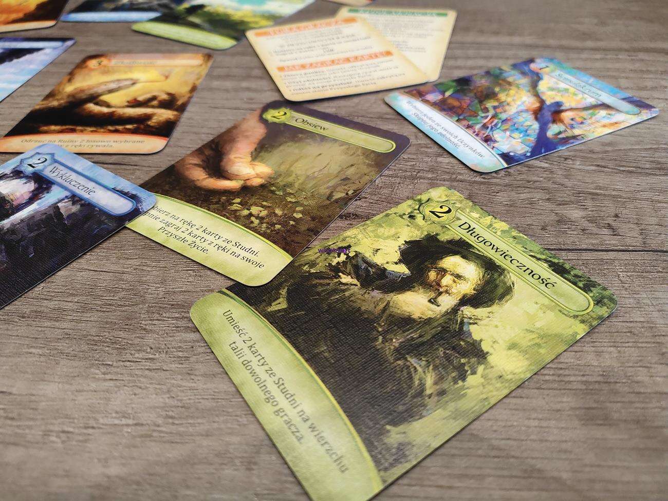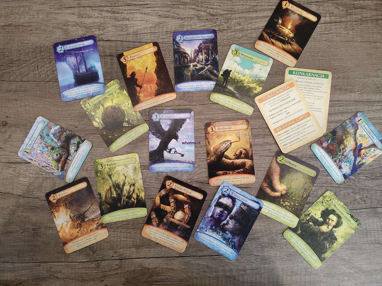 Podczas rozgrywki staramy się z kolei osiągnąć najwyższy poziom wcielenia na Karmicznej Drabinie, zagrywając karty tak, aby nie tylko zdobyć wystarczająco dużo punktów, ale też zabezpieczyć się w “przyszłych wcieleniach”. Jak tego dokonacie? To już Wasza sprawa. Poziom interakcji? Spory i choć każdy sobie rzepkę skrobie, to przeciwnikowi możemy nie tylko przeszkadzać, ale też pomagać.
