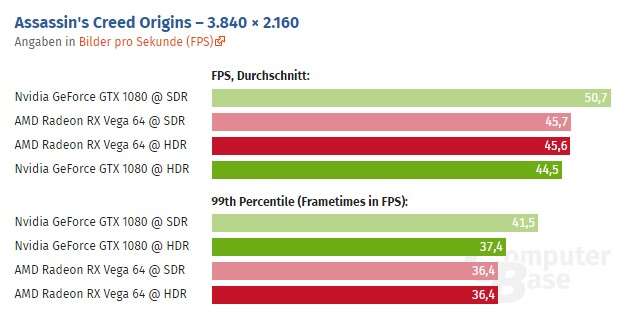 I nie chodzi tutaj o fakt, że modele kart graficznych AMD poradziły sobie lepiej. Mam na myśli fakt, że w przeszłości Nvidia twierdziła, że HDR nie wpływa na wydajność, a z niezależnych testów wyszło coś innego. Pod lupę wzięto jedynie dwie karty – GeForce GTX 1080 oraz Radeona RX Vega 64 i przetestowano je w 12 grach. Ich ustawienia wyciskały z GPU ostatnie poty, bo działały na rozdziałce 4K, czyli 3840×2160. Oczywiście z aktywnym trybem HDR, będącym głównym bohaterem tego wpisu.