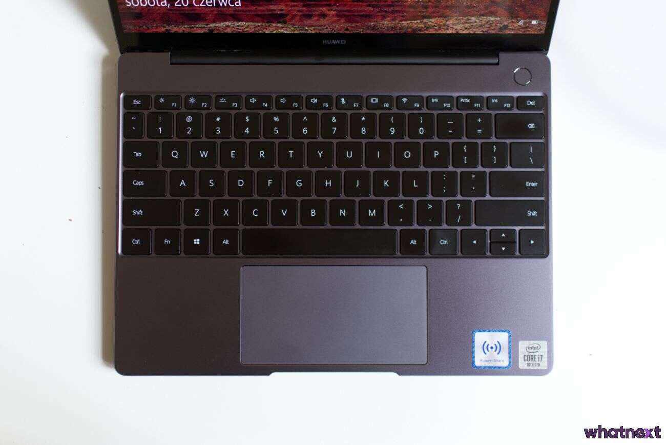 Zaletą MateBooka 13 jest też touchpad. Przede wszystkim jest duży. Nie ma chyba w sprzęcie tych wymiarów, poza MacBookami, większego gładzika. Zarówno pod względem wysokości, jak i szerokości. Jego powierzchnia jest odpowiednio śliska i pomimo mojej dużej niechęci do takiego obsługiwania komputera, korzysta się z niego bardzo wygodnie.