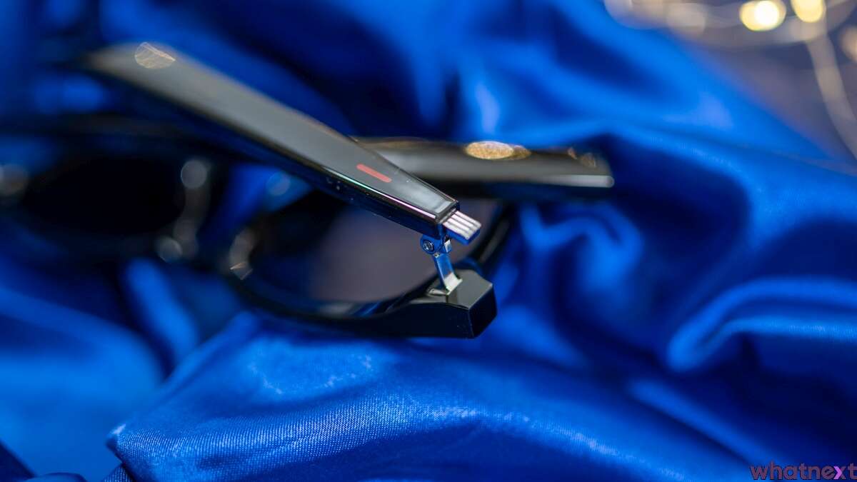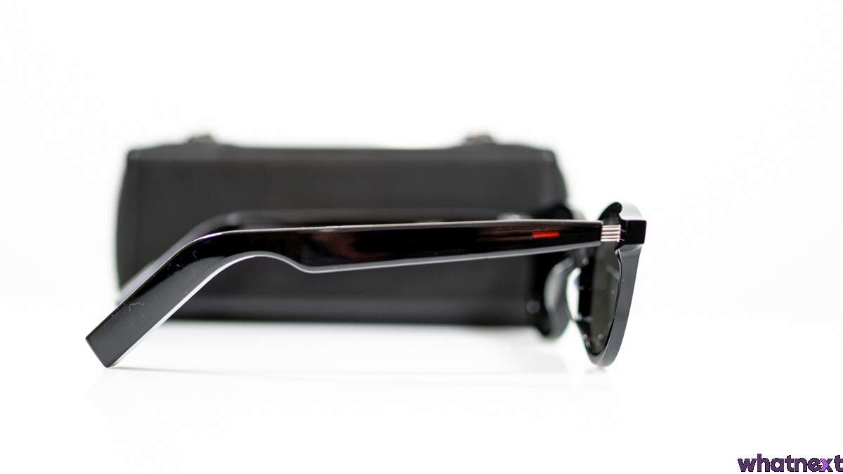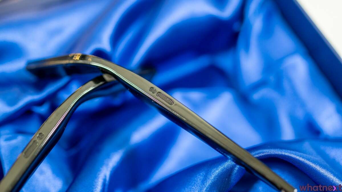 Pomimo obecności we wnętrzu elektroniki, póki nie weźmiemy okularów do ręki i nie zaczniemy ich dokładnie oglądać, raczej nikt nie powie, że jest to urządzenie elektroniczne. Otwory głośników i mikrofonów są bardzo dyskretne i ładnie wtapiają się w obudowę. Zastanawiać mogę jedynie czerwone kreski, ale równie dobrze można je uznać za część dizajnu.