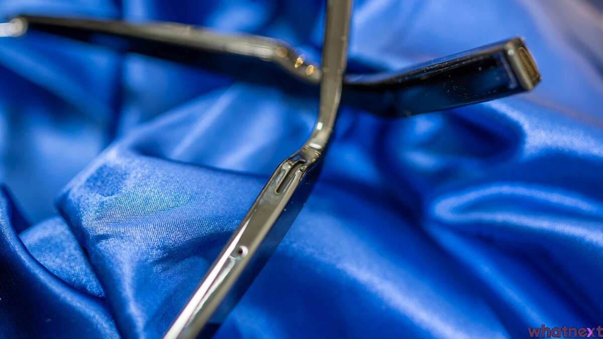 Oprawki są sztywne i nieco grube. Z kolei zawiasy metalowe i naprawdę bardzo eleganckie. Huawei przekonuje, że zostały wykonane ze stopu tytanu.