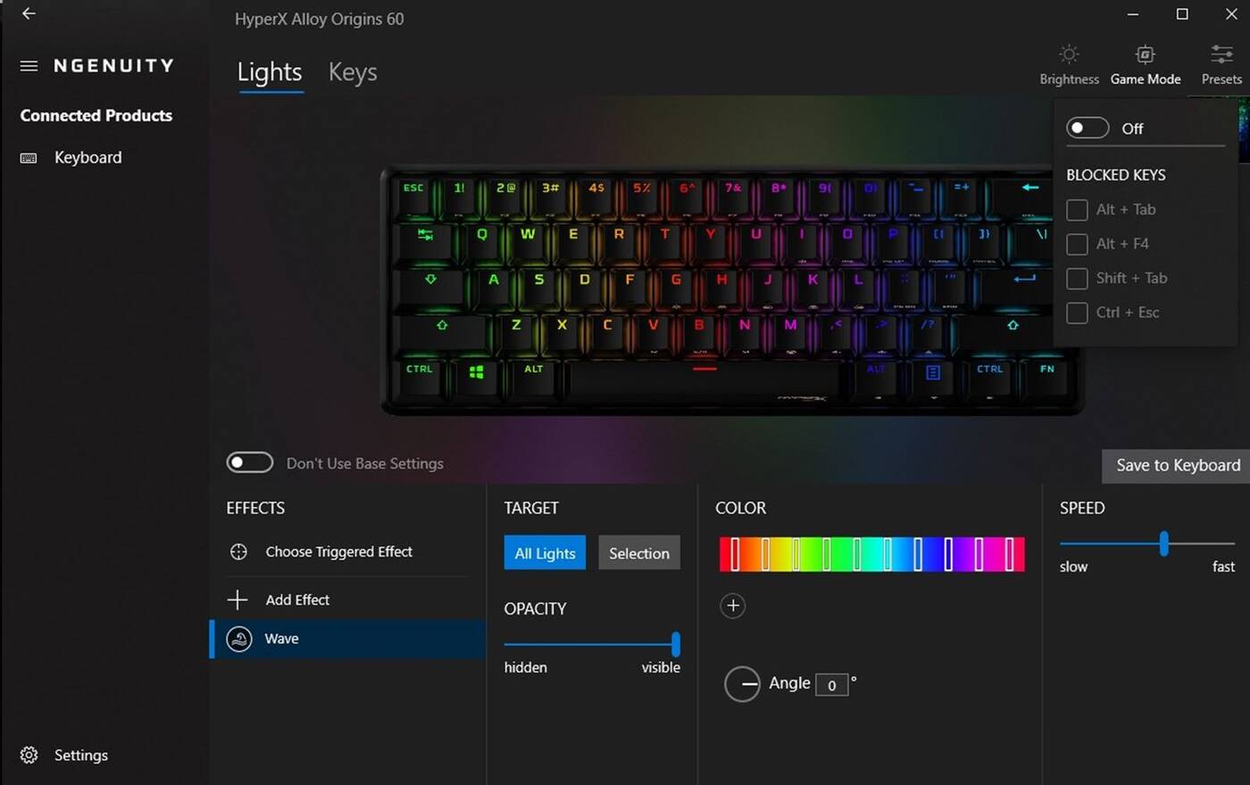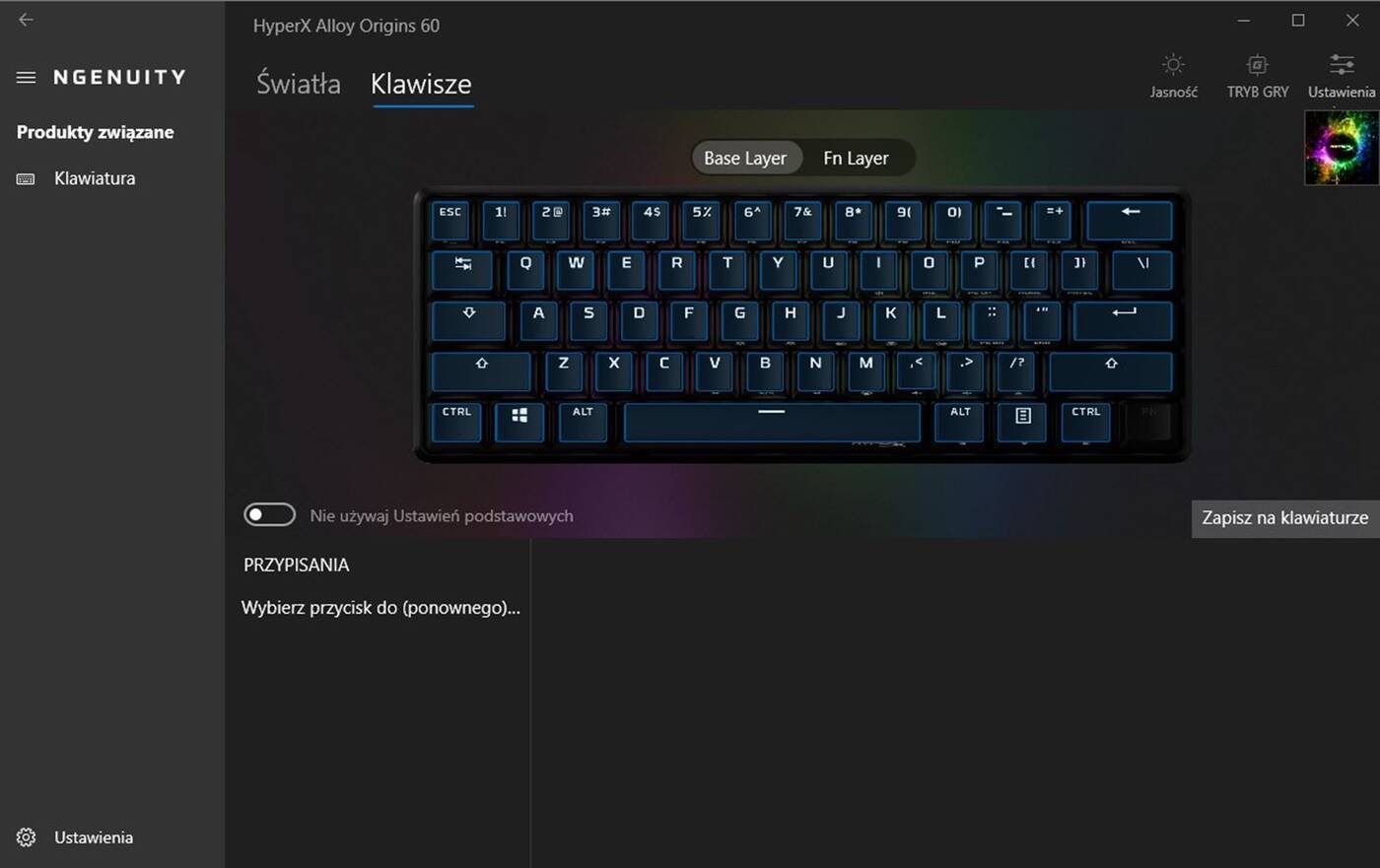 Sama w sobie aplikacja NGenuity sprawdza się świetnie, oferując podstawowe opcje w przejrzystym interfejsie. Znajdziemy w niej przypisywanie ustawień do poszczególnych gier, prosty powrót do ustawień domyślnych, podmianę funkcji klawiszy zarówno pod kątem osobnym, jak i po połączeniu z klawiszem funkcyjnym, jak również opcje trybu gamingowego oraz profile w oprogramowaniu i trzy w pamięci urządzenia.