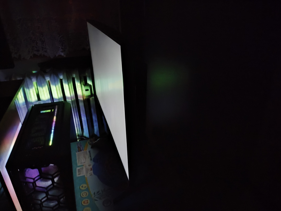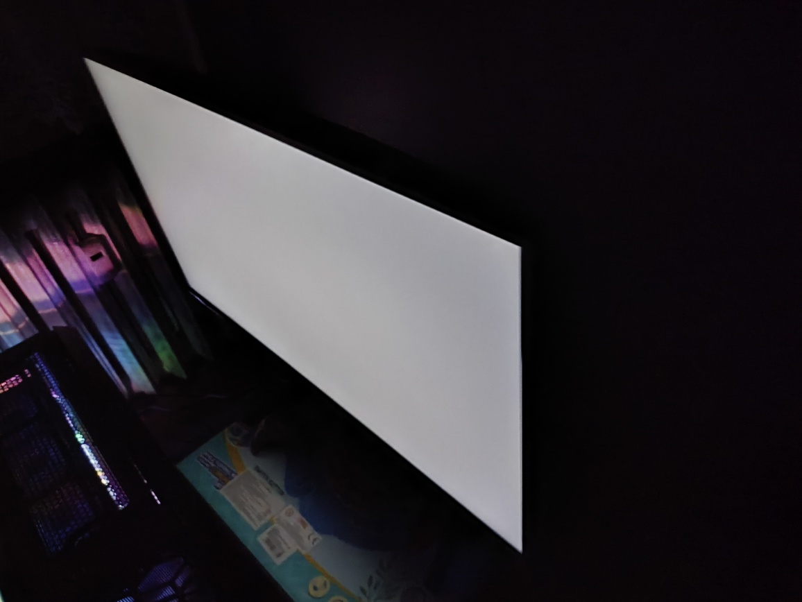Równomierność podświetlenia jest taka sobie – od razu po włączeniu monitora na czarnej tablicy testowej zauważyłem wycieki światła oraz jaśniejsze strefy (widać to na zdjęciach poniżej). Kąty widzenia też nie zachwycają, w mojej ocenie są co najwyżej przeciętne: pod większym kątem następuje bowiem degradacja kolorów i spadek jasności.