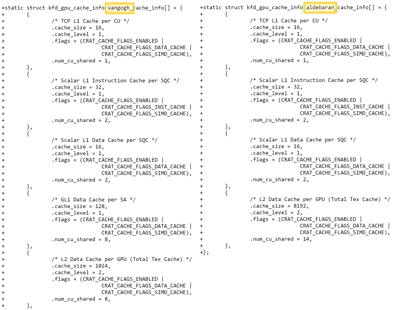 Wśród zamieszczonych wśród poprawek informacji padły szczegóły na temat różnych procesorów graficznych – od Vega 10 po Aldebaran i na najnowszych Navi 2X kończąc. Mowa tutaj o GPU Sienna Cichlid (Navi 21), Navy Flounder (Navi 22) i Dimgrey Cavefish (Navi 23) i choć nie wspomniano bezpośrednio o pamięci podręcznej Infinity, to plik zawierał listę z pamięcią poziomu 3, co jej odpowiada.