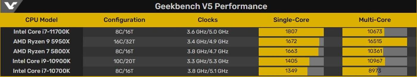 Wszystko przez nowe korzenie, jako że Intel Core i7-11700K jest oparty na nowej konstrukcji rdzenia Cypress Cove firmy Intel, zapewniającej nawet dwucyfrowy wzrost IPC w porównaniu z procesorami opartymi na Skylake. Wiemy też, że w tym teście nadchodzące CPU Intela zostało sparowane z płytą główną Z490 AORUS Master obecnej generacji.