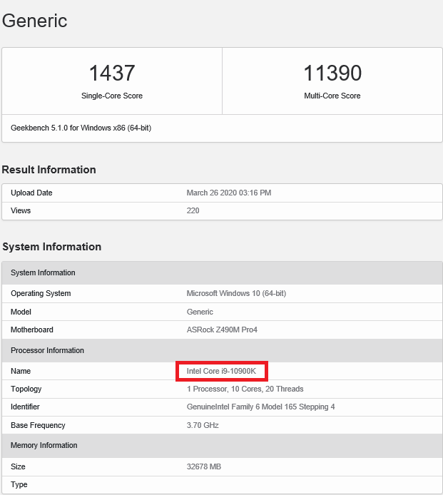 Zbliżamy się do premiery nowych procesorów Intel. Właśnie w sieci pojawił się test Intel Core i9-10900K w Geekbenchu.