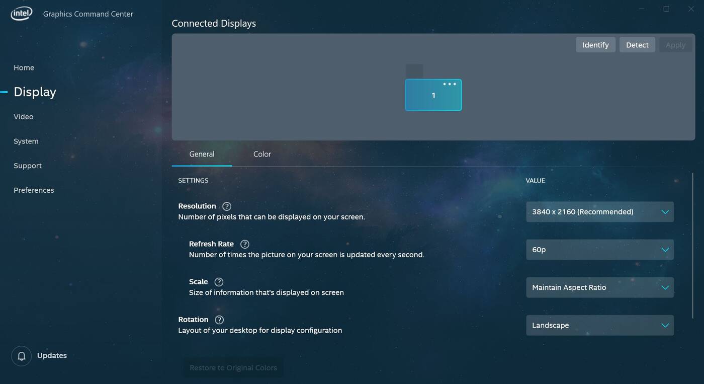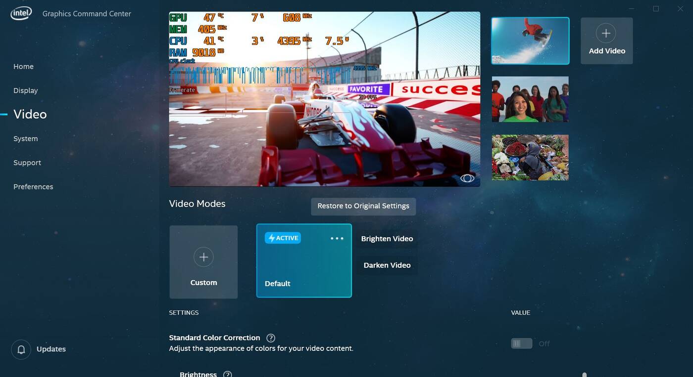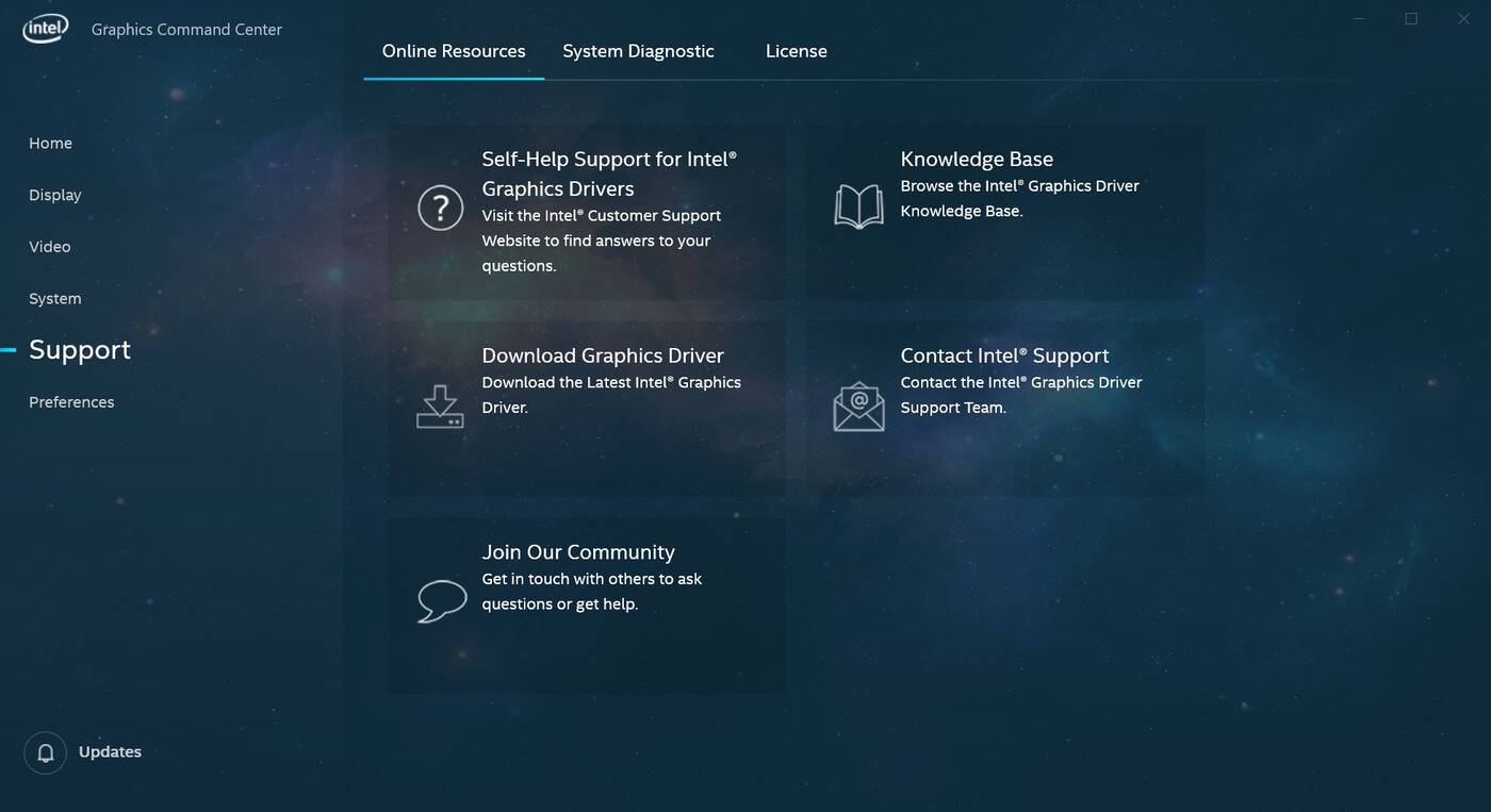 Po stronie ustawień widzimy wyłącznie podstawy (rozdzielczość, odświeżanie, rotacja ekranu) i raczej zbędne dodatki (m.in. skróty klawiszowe), wśród których możemy jednak zauważyć perełki. Mowa np. o korekcji jasności, czy koloru, ale mnie zdecydowanie najbardziej zainteresowała zakładka Diagnostyki Systemu oraz Sterownika, która zapewne umożliwi nam proste aktualizację. Mam jednak nadzieję, że więcej funkcji zostanie dodanych w miarę zbliżania się do wprowadzenia na rynek dyskretnej grafiki Intel Xe gdzieś w 2020 roku.
