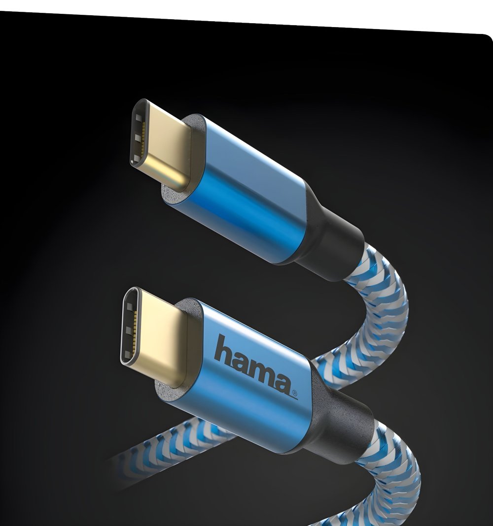 Kwestia ładowarek została wyczerpana, brakuje jeszcze więc przewodu. Aby domknąć ten zestaw, firma Hama zwraca uwagę na kabel Data Reflected o długości 1,5 m z wtykiem USB-C z obu stron. Oplot z odblaskowego nylonu ułatwia zlokalizowanie kabla w torbie czy przy łóżku – wystarczy, że padnie na niego światło. Gwarantuje też wytrzymałość na wielokrotne zginanie. Kabel wspiera ładowanie prądem do 3 A i zapewnia transfer danych zgodny z USB 2.0 (prędkość do 480 Mb/s), co w codziennym scenariuszu w zupełności wystarcza do synchronizacji zdjęć czy dokumentów. Podkreślmy, że pozłacane wtyki zwiększają odporność złącza na utlenianie.