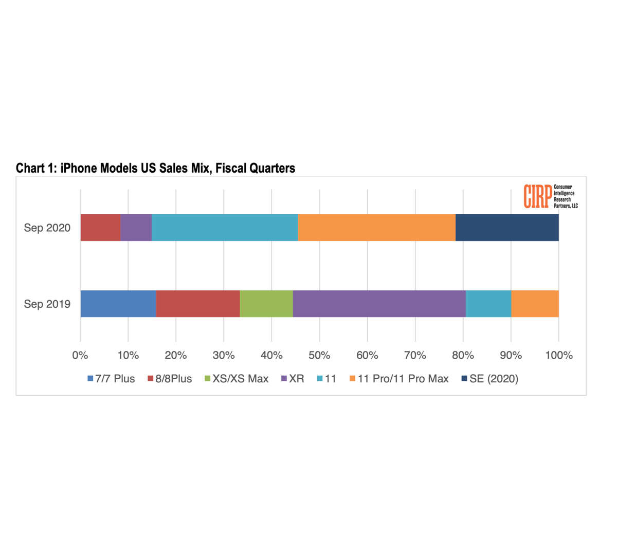 W porównaniu z rokiem 2019 – zniknęła sprzedaż iPhone 7. Warto też zauważyć, że iPhone XR był szalenie popularnym modelem i mimo tego, że wciąż można go bez problemu dostać od Apple – jego sprzedaż znacząco spadła.