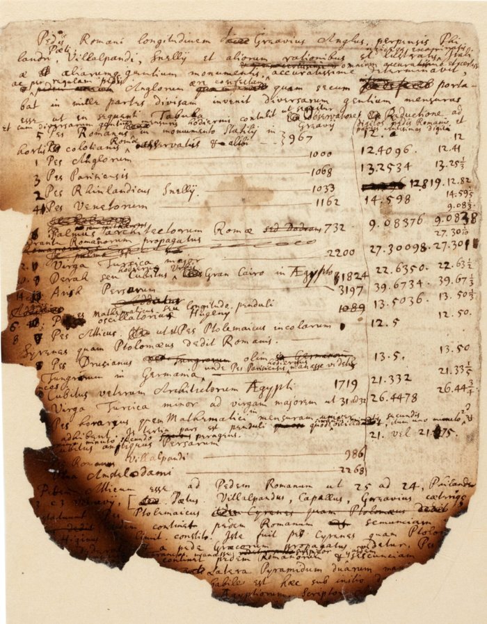 Na częściowo spalonych zapiskach możemy znaleźć teorie Newtona poświęcone starożytnej Wielkiej Piramidzie w Gizie. Jego zdaniem budowla została zaprojektowana w oparciu o jednostkę miary zwaną łokciem staroegipskim.