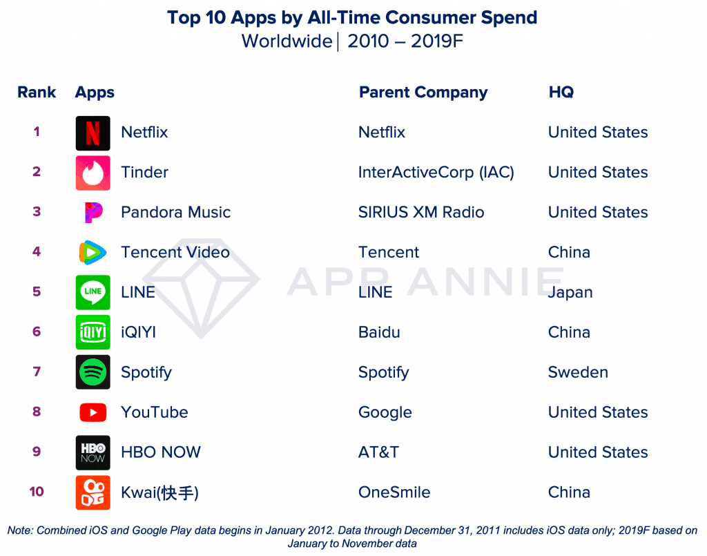 Okazuje się, że najczęściej pobieraliśmy Facebooka. Na dalszych miejscach jest Messenger, WhatsApp i Instagram. Jak sami widzicie, dominują aplikacje będące w posiadaniu Facebooka. Ciekawą sprawą jest też obecność TikToka w tym zestawieniu. Pod względem spędzonego czasu dominuje Netflix, ale tu nie ma się co dziwić. Nieoczekiwanie jednak drugie miejsce należy do Tindera. Warto zapoznać się ze statystykami, bowiem pokazują one jak wyglądał ostatnia dekada.