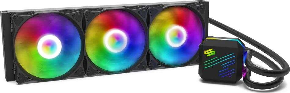 SilentiumPC Navis Evo ARGB 360 to jedno z najtańszych AiO 360 mm na rynku. Trzy 120 mm wentylatory mają maksymalną prędkość 1600 RPM. Pompka pracuje z prędkością 2500 RPM. AiO także świetnie wygląda – śmigła oraz blokopomka mają podświetlenie ARGB, którym można sterować za pomocą oprogramowania albo kontrolera. W obudowie z oknem całość będzie bardzo dobrze się prezentowała. Dzięki tak dużej chłodnicy AiO powinno poradzić sobie nawet z najmocniej podkręconymi procesorami na rynku.