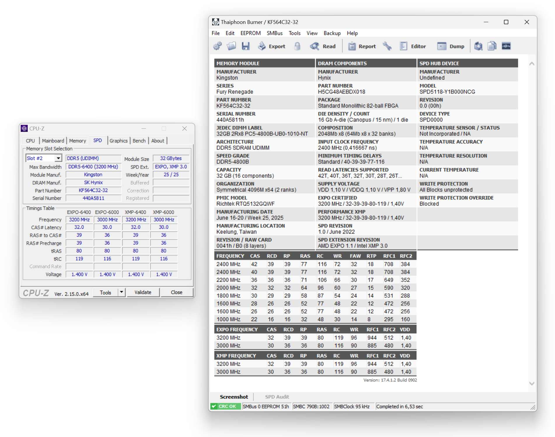 - EXPO DDR5-6400 CL32-39-39-80-119 @ 1.4 V