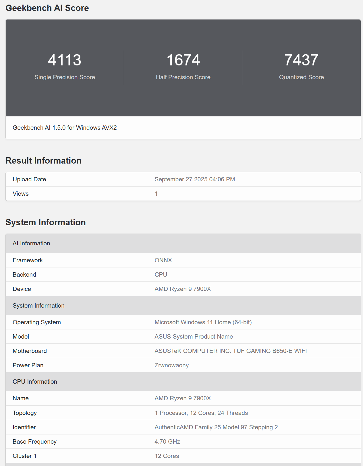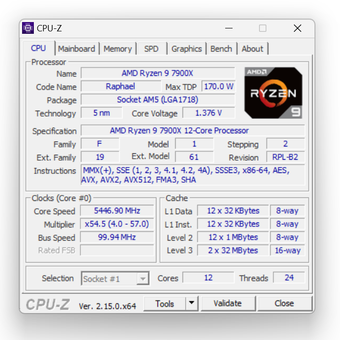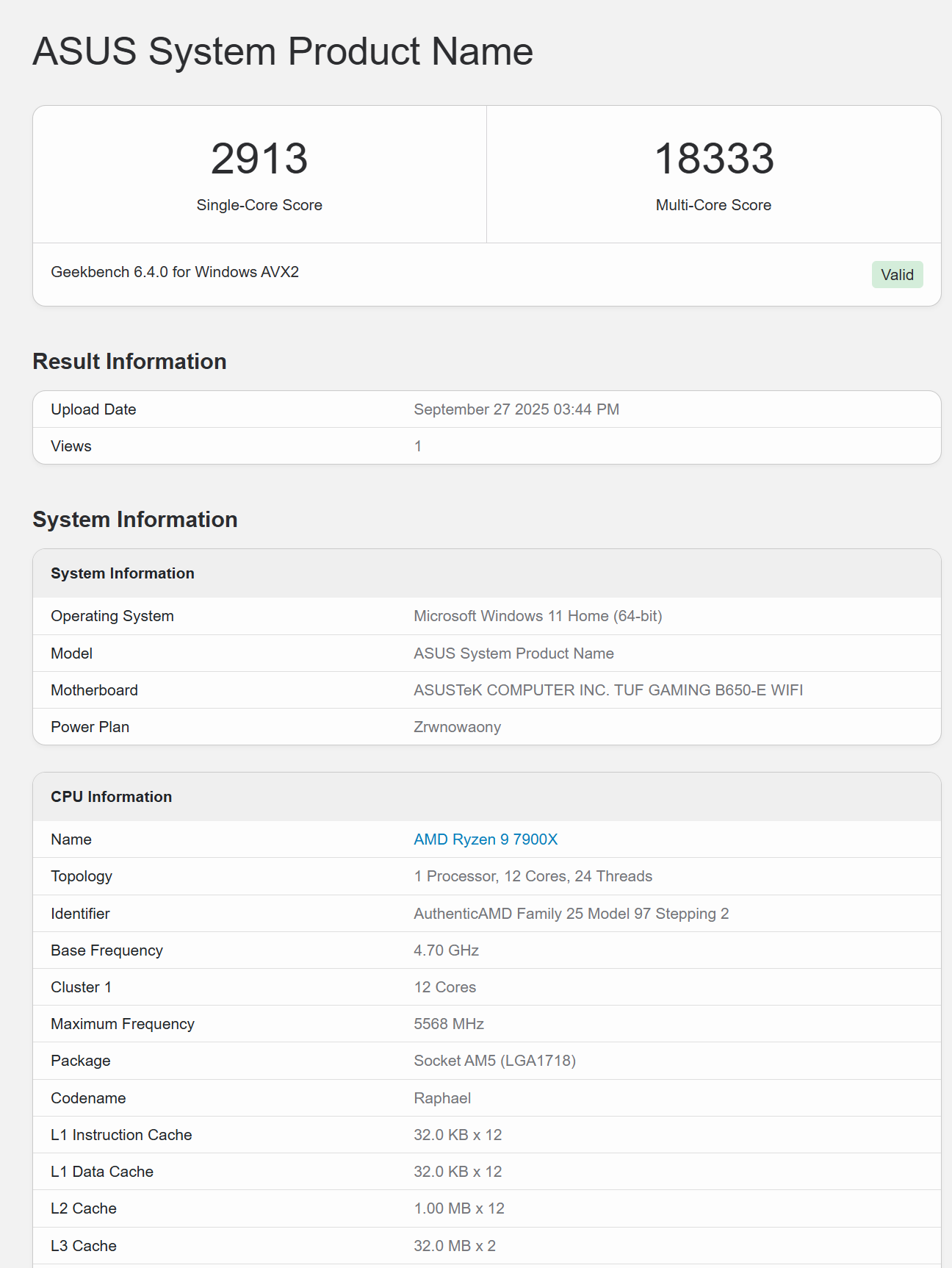 | Procesor | AMD Ryzen 9 7900X (12 rdzeni / 24 wątki) |