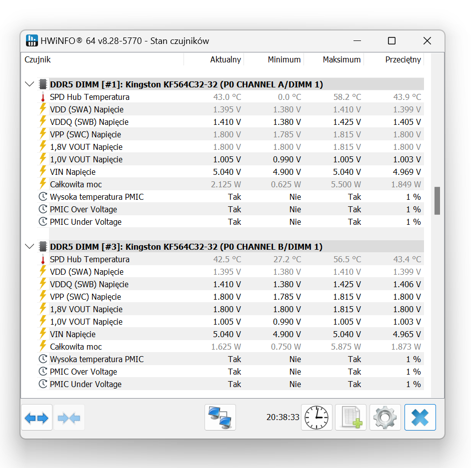 - podgląd wybranych parametrów technicznych modułów DDR5
