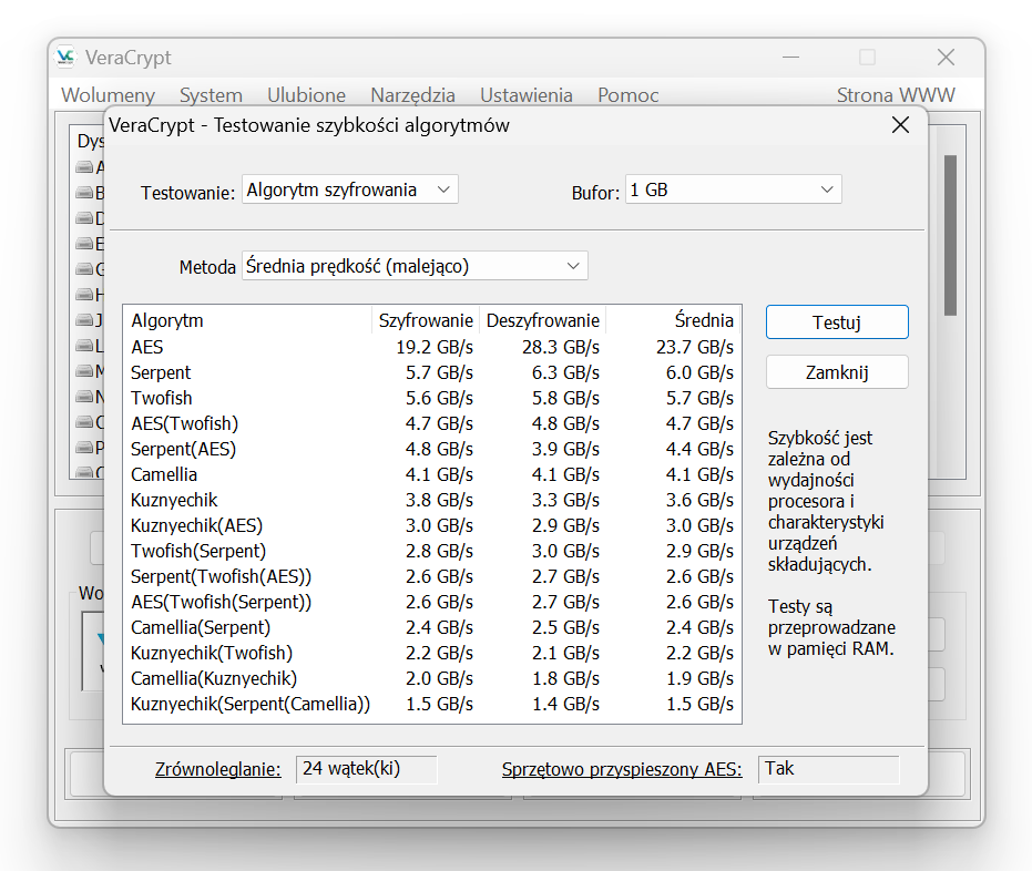 Wszystkie testy przeprowadzono na komputerze z zainstalowanym systemem operacyjnym Windows 11 Pro 24H2 x64. Procesor pracował z taktowaniem wynoszącym do 5.5 GHz maksymalnie dla wszystkich rdzeni, pamięci natomiast na ustawieniach fabrycznych (wbudowany profil EXPO w tym konkretnym przypadku).