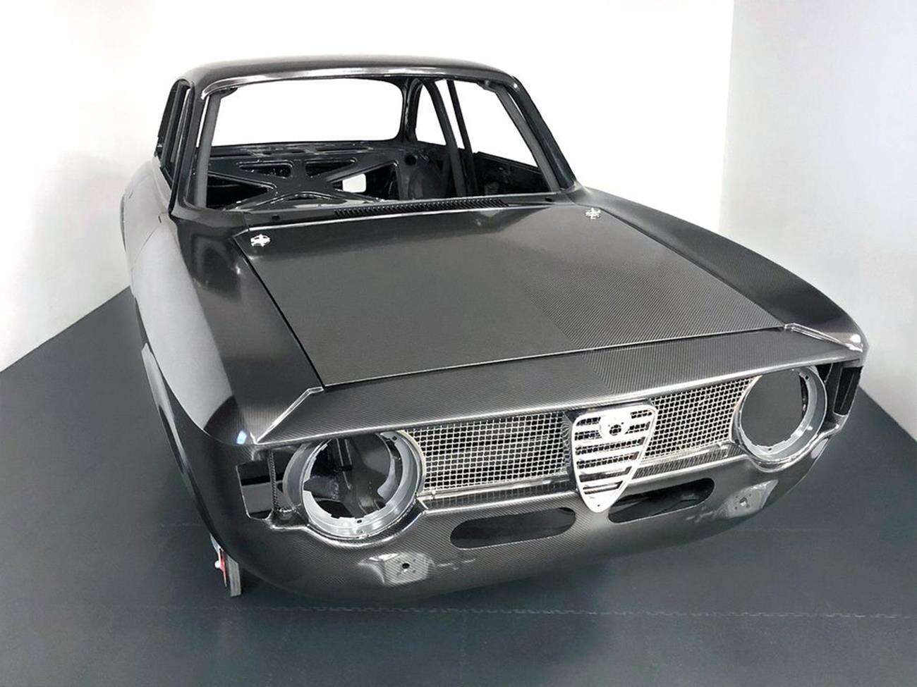 W tym tygodniu ujawniła bowiem ofertę przeogromnej przeróbki klasycznego coupe Giulia. Mowa o pełnej konwersji karoserii ze stali do „gołego” włókna węglowego, która obejmuje wszystkie zewnętrzne panele nadwozia. Jak możecie się domyślać, samochód traci na niej sporo wagi, bo prawie 70 kg.