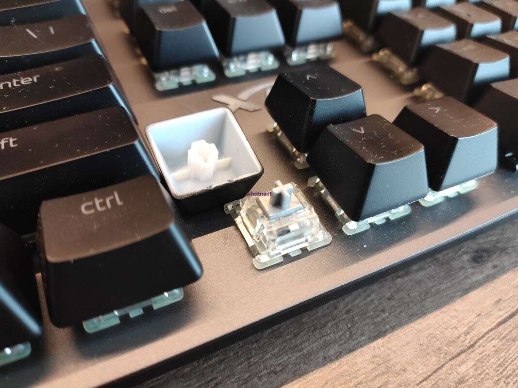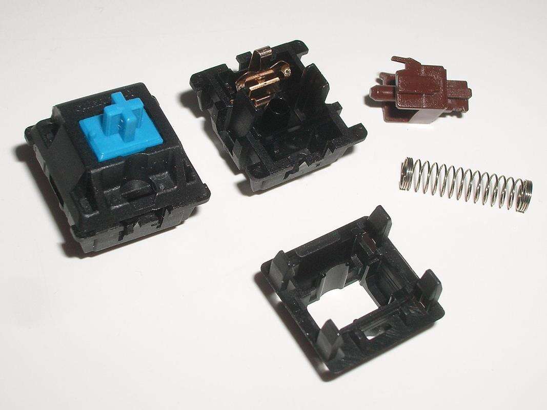 Tym mechanizmem jest nic innego, jak połączona w małej obudowie sprężyna z trzpieniem, od którego zależy znacząca część pracy przełącznika i na którego zakładamy keycap, czyli klawisz z czcionką. W zależności od rodzaju przełącznika, do tego duetu może dołączyć element zmieniający charakterystykę kliku. Podobnie jednak jak przy membranach, aktywacja klawisza powoduje połączenie obwodu elektrycznego, dzięki czemu prąd (sygnał) trafia do komputera. To więc zastąpienie membrany sprężyną jest takie kluczowe.