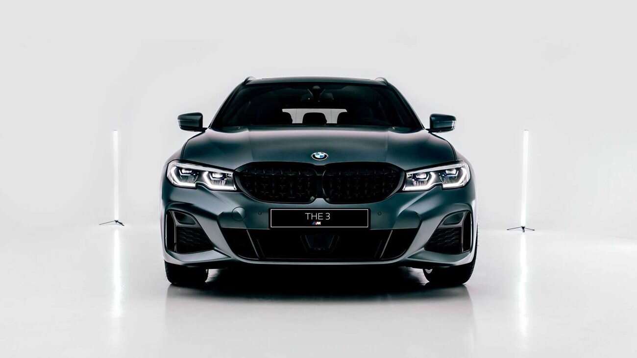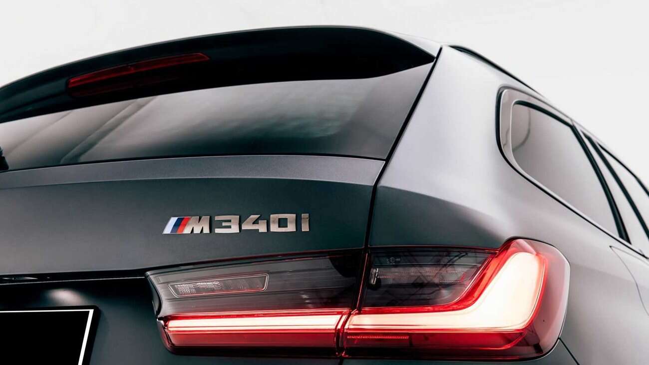M340i Touring First Edition cechuje lakier Frozen Dark Grey, którego uzupełniają laserowe światłą przednie oraz tylne w pełni diodowe. Wygląd zewnętrzny jest dodatkowo podkreślony przez kilka błyszczących czarnych detali, a w tym kratkę nerkową, tylny dyfuzor, czy relingi dachowe. Całość dopełniają 19-calowe felgi ze stopu metali lekkich, które ukrywają masywne czerwone zaciski hamulcowe.