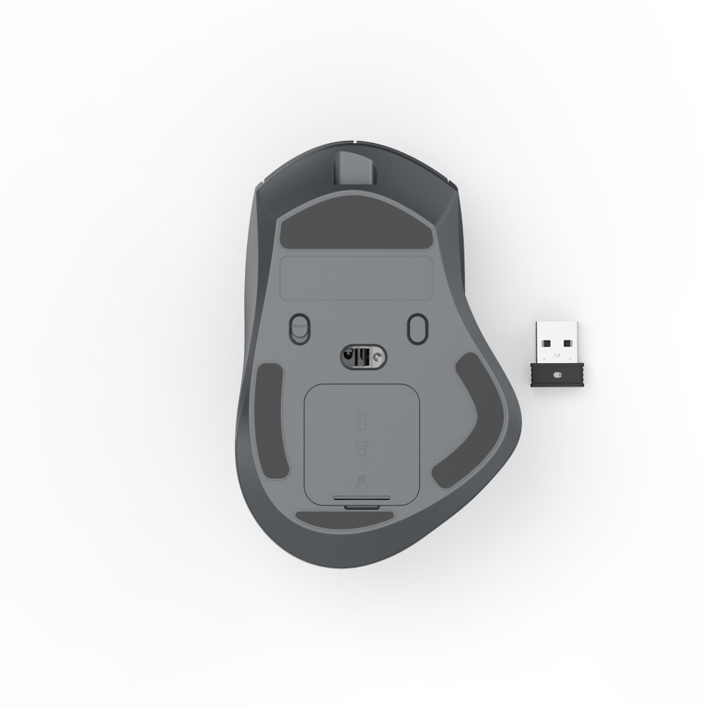 Myszka potrafi zostać sparowana jednocześnie z aż trzema urządzeniami, a to za sprawą dwóch kanałów Bluetooth i kanału radiowego o częstotliwości 2,4 GHz. Przełączyć między nimi można po prostu jednym przyciskiem. Za łączność radiową odpowiada odbiornik USB-A, chowany do środka korpusu myszki.