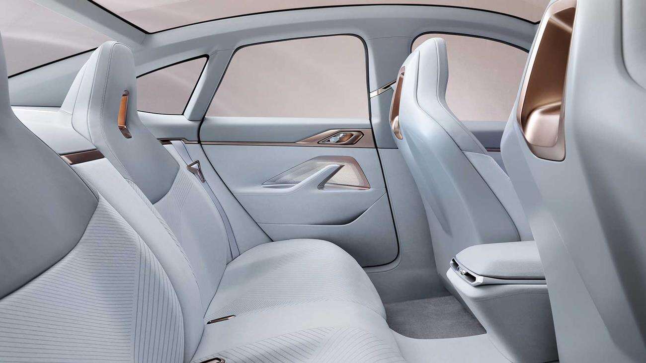 Wnętrze prawdopodobnie nie będzie aż tak przestronne i minimalistyczne jak to, co widzimy tutaj, ale skupienie się na kierowcy i4 jest częścią planu BMW. Mówi się, że duży, zakrzywiony wyświetlacz pokazuje przyszłe wyświetlacze marki dla iNext, jak i i4 z trzema trybami systemu operacyjnego.