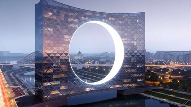 Fundamental Architects z Holandii zaoferowały dość niezwykłe podejście do wieżowca z koncepcją Wieży Słońca (z ang. Tower of the Sun) w ramach konkursu dla BI Group. Cechą charakterystyczną tego projektu jest duży okrągły otwór w jego środku, wszechobecne szkło oraz nietypowy sposób pozyskiwania energii, bo z rzeki, której brzegi łączy.