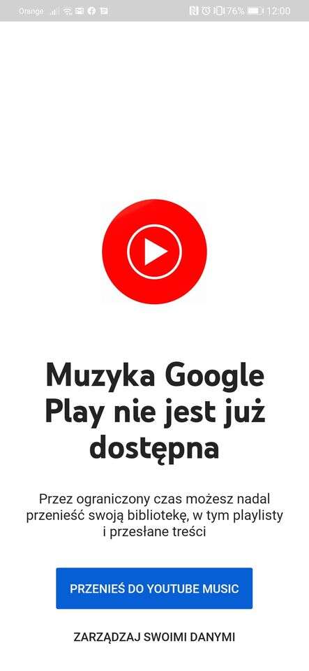 Muzyka Google Play nie jest już dostępna. Przez ograniczony czas możesz nadal przenieść swoją bibliotekę, w tym playlisty i przesłuchane treści.