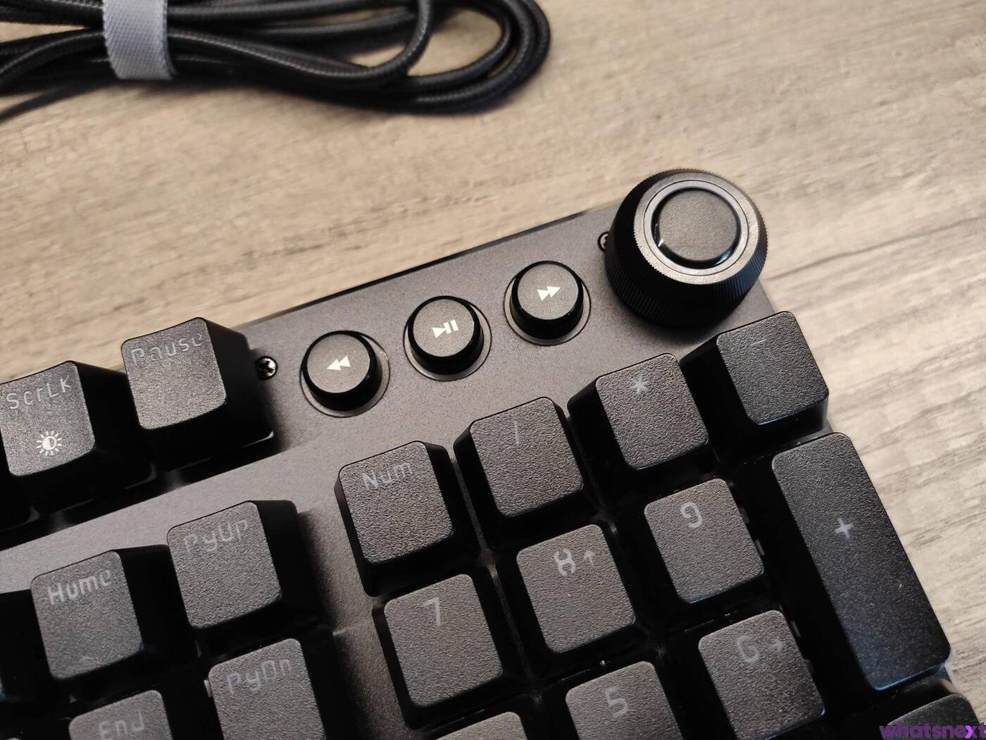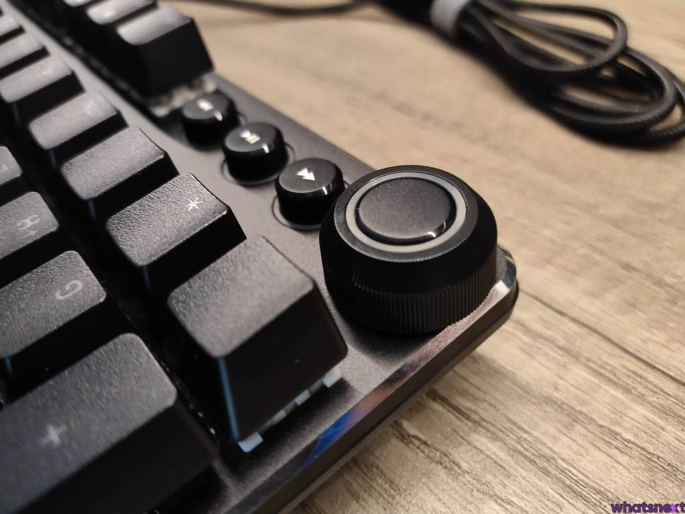 Niestety białe nadruki na klawiszach nie prezentują się zbyt dobrze, a gdyby tego było mało, część z nich powiela działanie tych dedykowanych przycisków i pokrętła. Tutaj Krux ewidentnie pokazał, że Crato RGB, to bardziej klawiatura-Frankeinstein, niż model zaprojektowany od podstaw.
