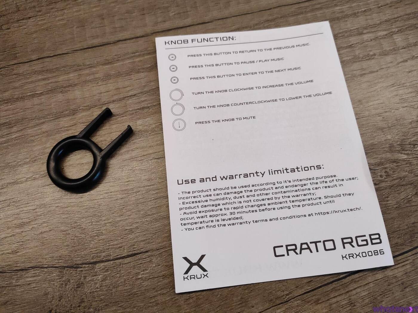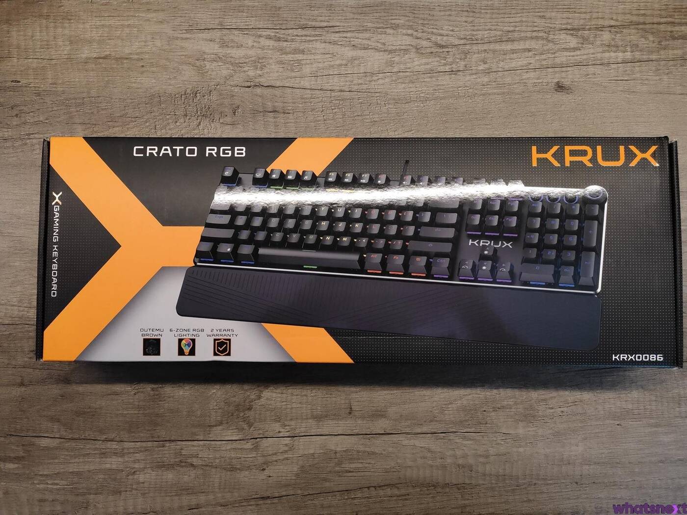 Jak to na tanie klawiatury przystało, Krux Crato RGB trafia do nas bez zbędnych wodotrysków. Prosty karton ozdobiony charakterystycznym dla marki designem skrywa w sobie tylko instrukcję obsługi w języku polskim oraz angielskim i samą klawiaturę owiniętą w folię i trzymaną w ryzach przez dwie pianki.