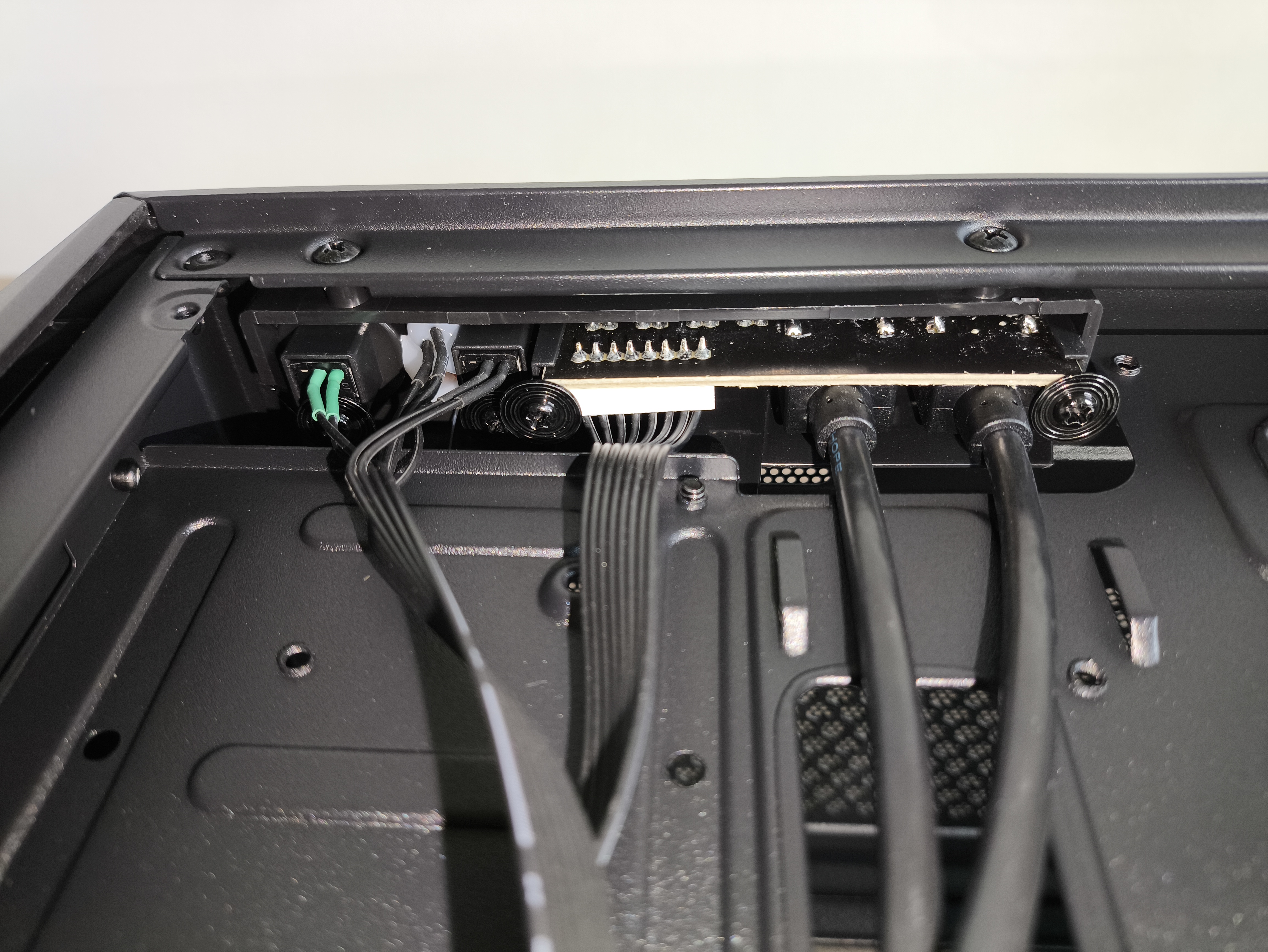 Obudowa oferuje liczne przepusty ma kable, jednak wszędzie brakuje gumowych elementów (grometów), a sama blacha panelu bocznego nie ma przetłoczenia ułatwiającego ukrycie większej wiązki kabli. Spory minus daje również za niezintegrowany w jedną kostkę kabel front-panelu.