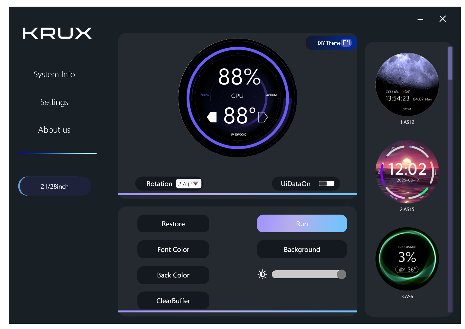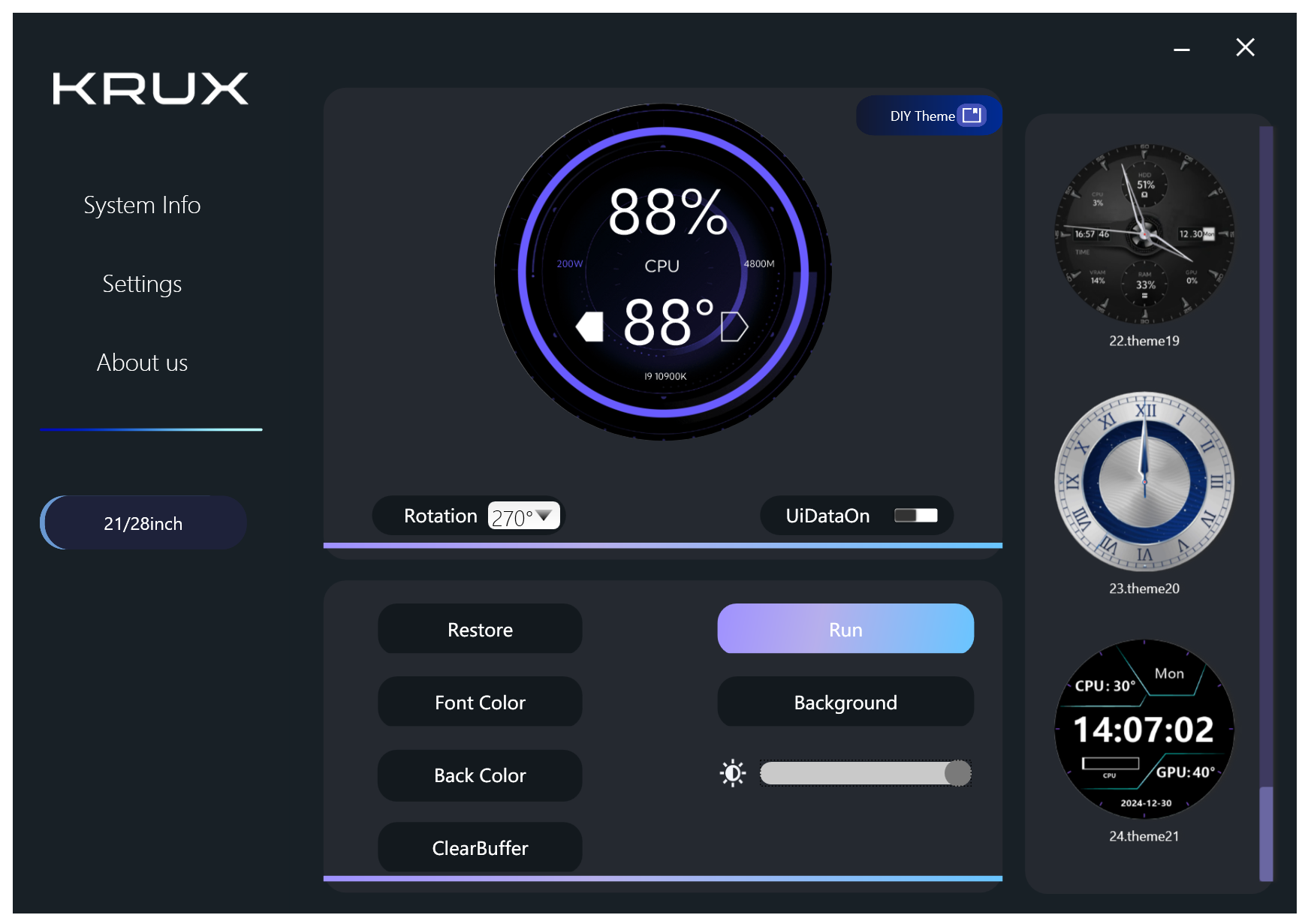 Druga zakładka zawiera ustawienia. W przypadku HydroX 240 nie ma możliwości wyboru stylów graficznych dla wyświetlacza LCD – ta funkcja dostępna jest wyłącznie w HydroGlance 360.