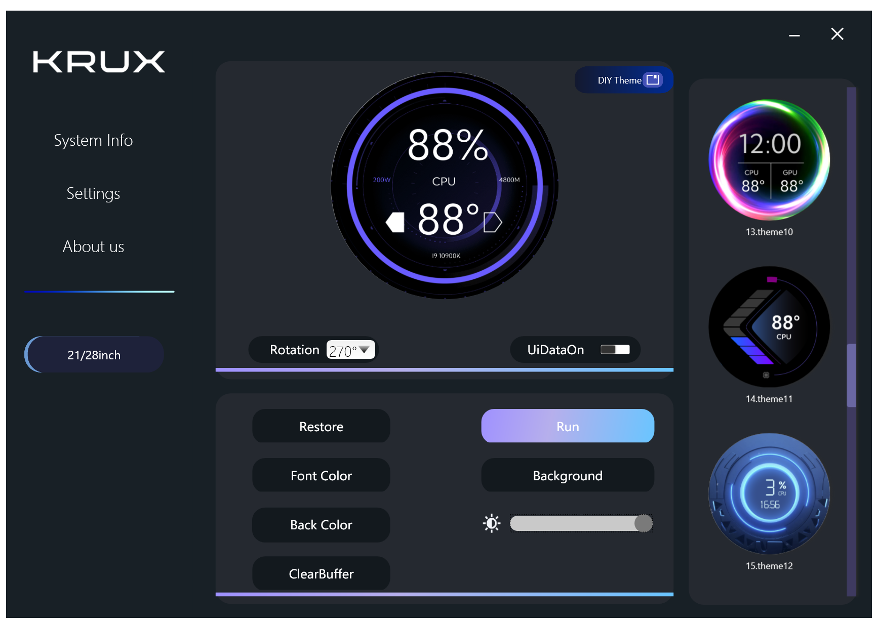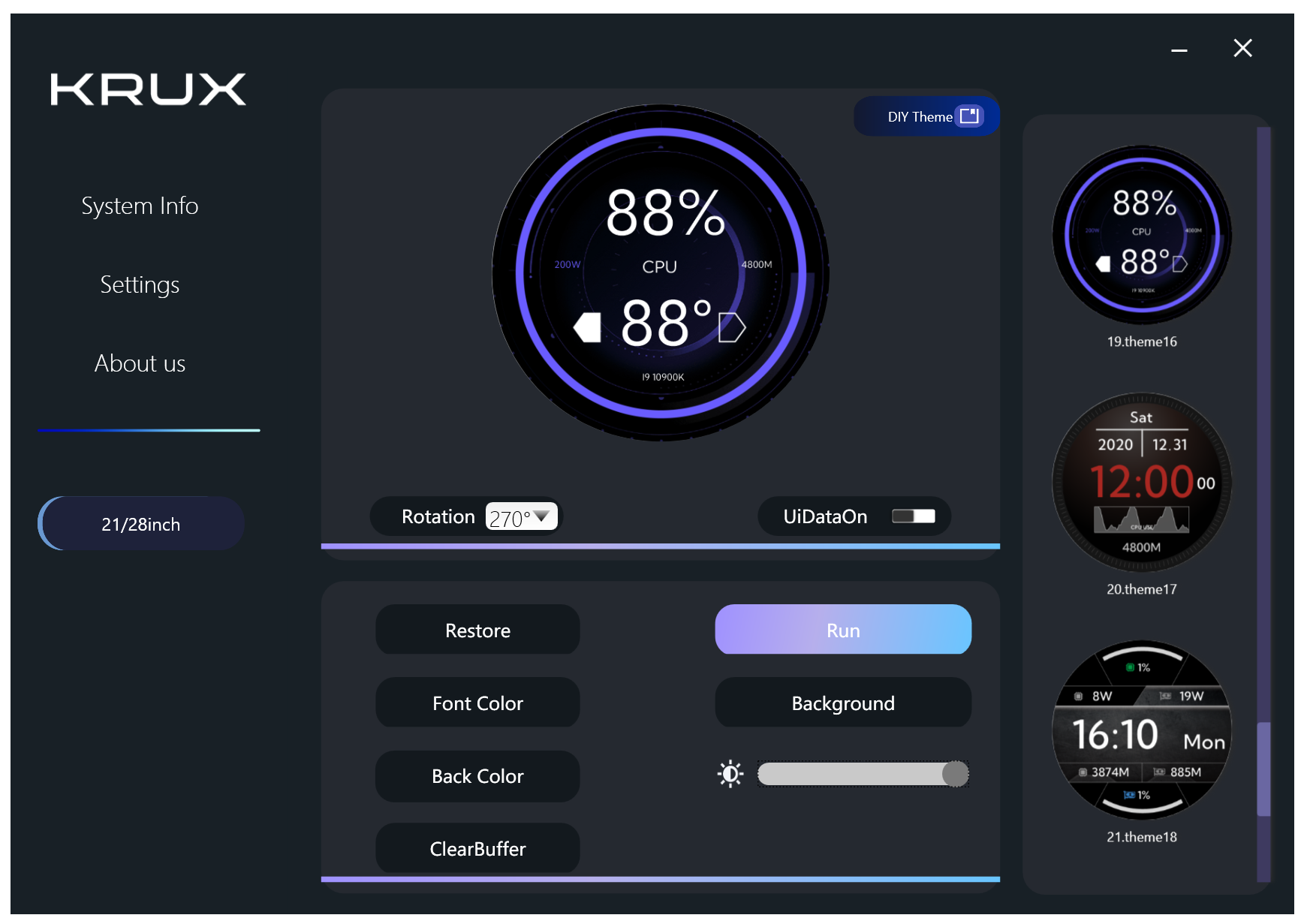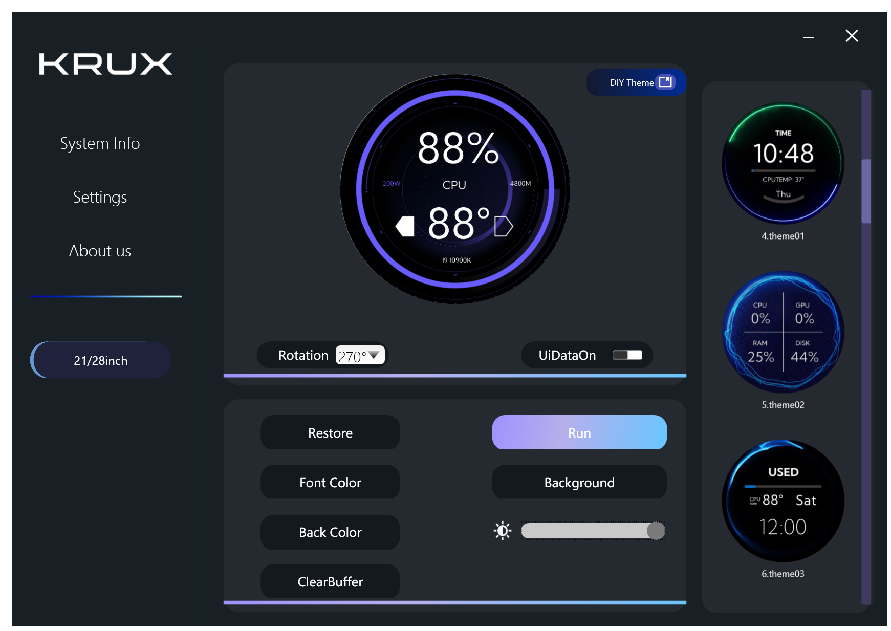 Co dokładnie oferuje oprogramowanie? Główny ekran prezentuje informacje systemowe – temperaturę, pobór energii, taktowanie na żywo, obroty wentylatorów CPU i GPU oraz dane dotyczące pamięci RAM.