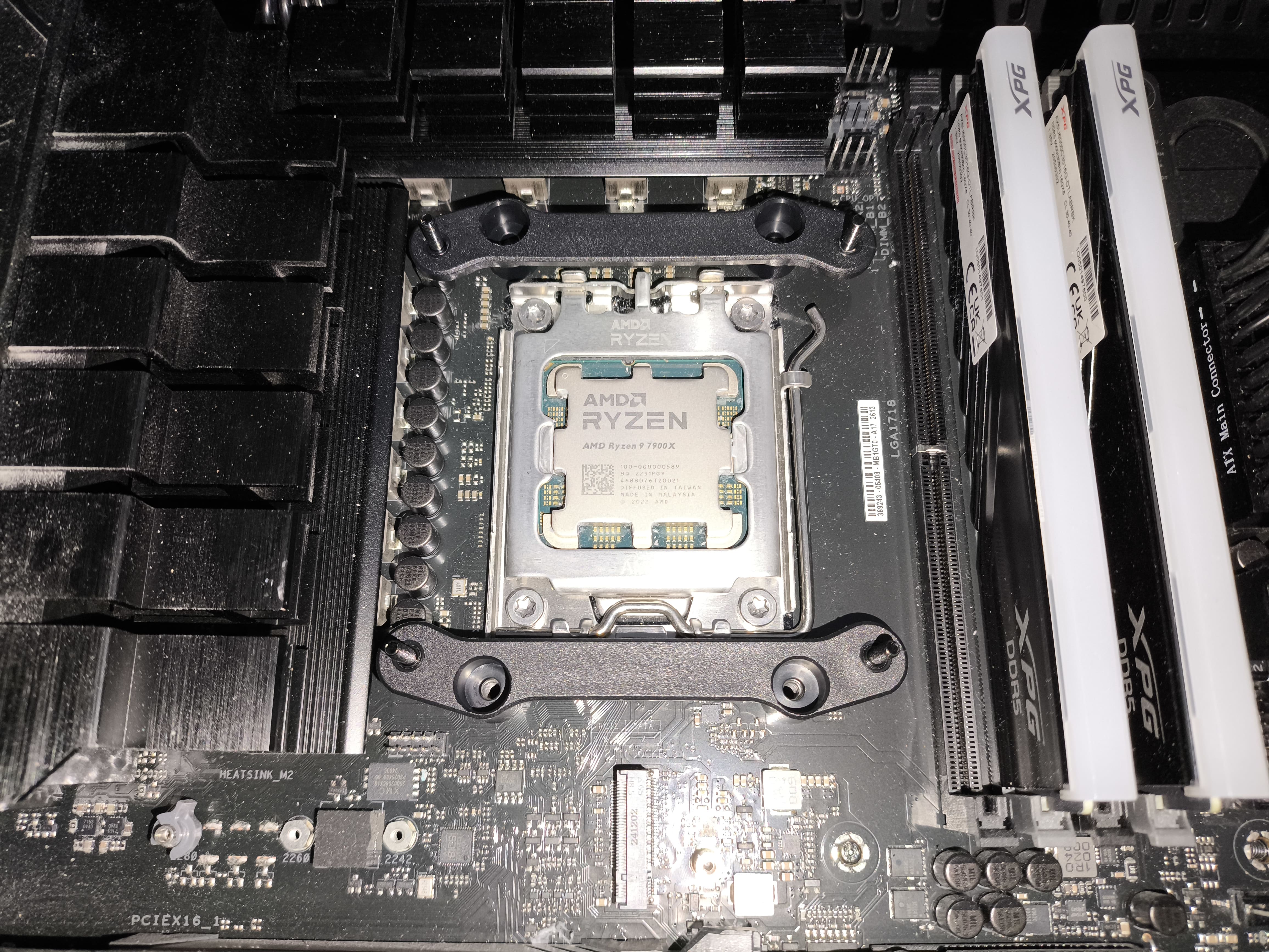 Proces instalacji obu chłodzeń na gnieździe AM5 przebiega w sposób łatwy i nie powinien sprawić trudności nawet mniej doświadczonym użytkownikom. Na początku należy zdjąć plastikowe prowadnice znajdujące się wokół gniazda procesora, następnie zamocować i przykręcić dwa plastikowe ramiona montażowe.