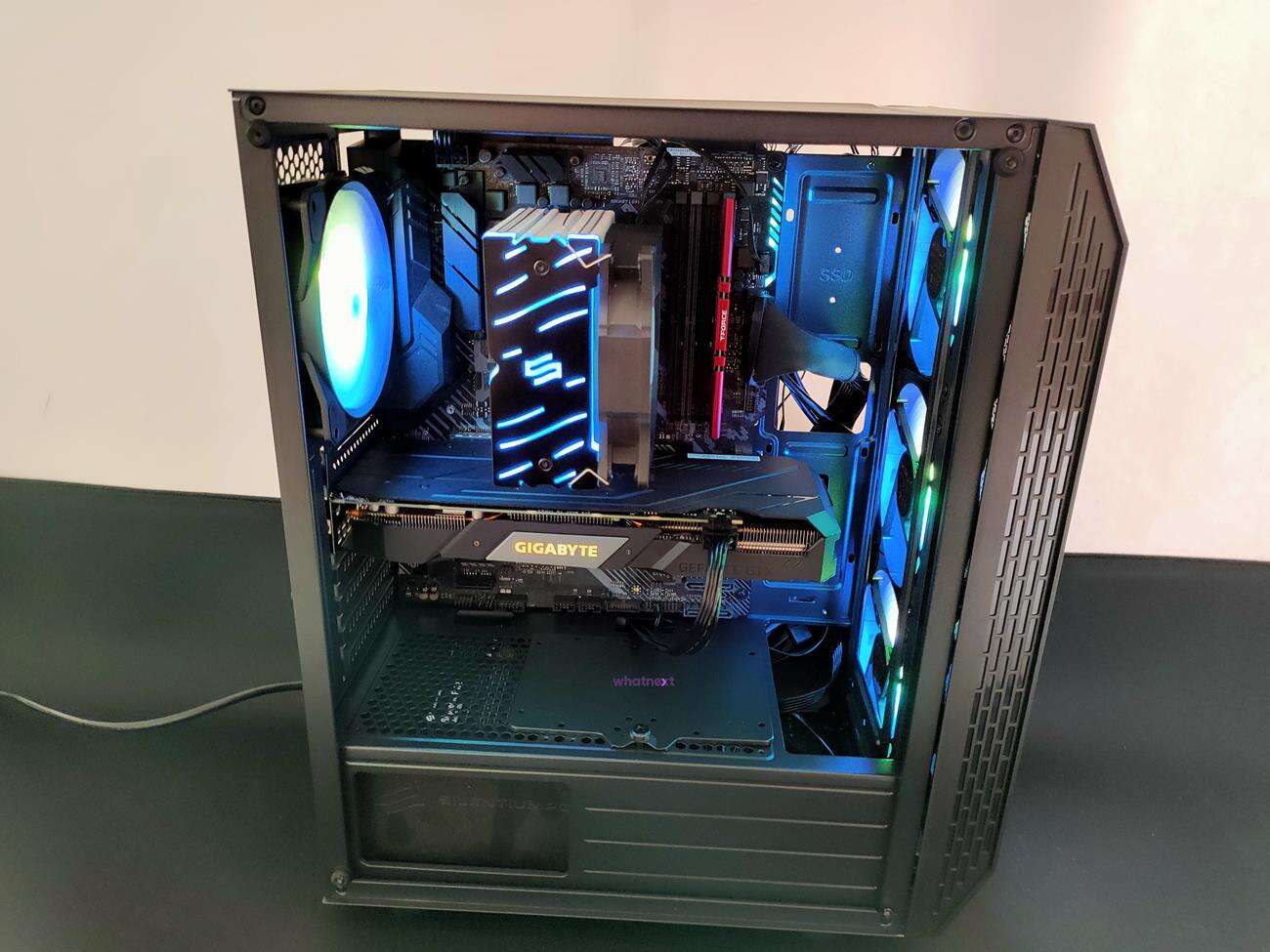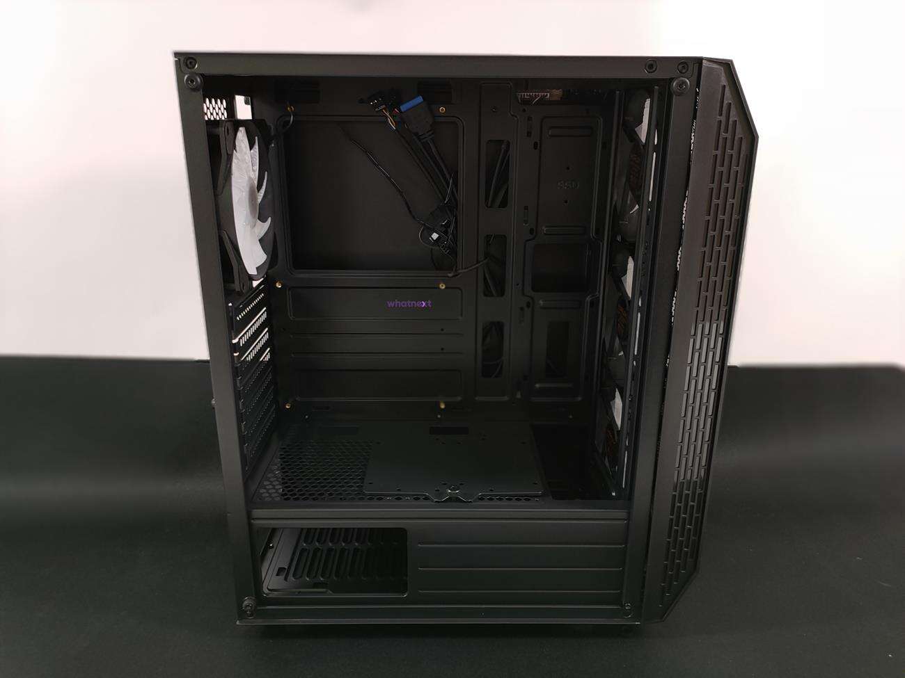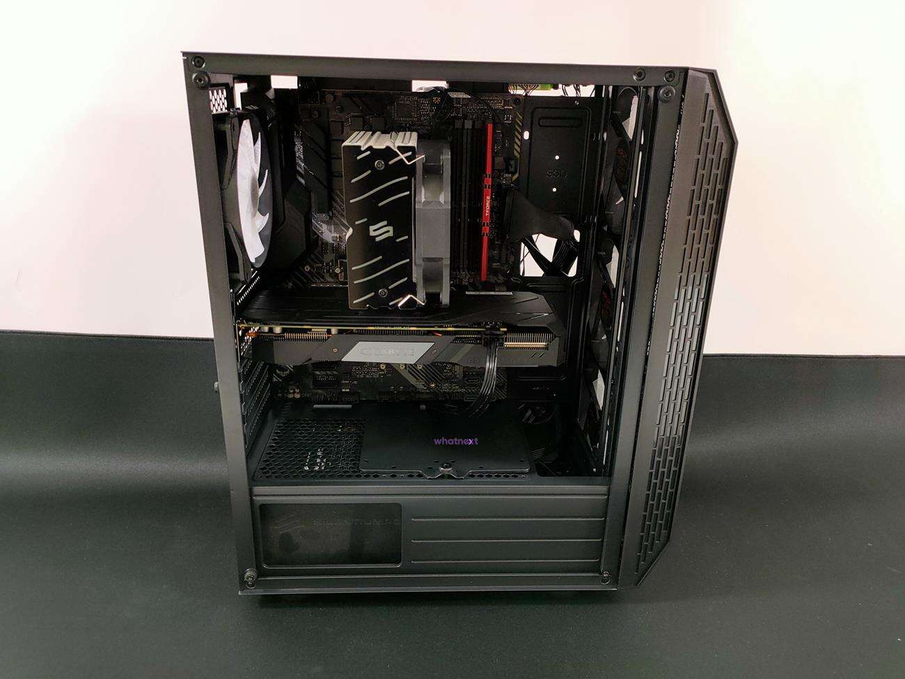Obudowa także nieźle wygląda. Szkoda jednak, że podświetlenie ARGB jest predefiniowane i nie można nim sterować. Pozostałe plusy i minusy są identyczne jak w Krux Astro, czyli płyta ATX przykryje otwory na okablowanie (mimo to zarządzanie okablowaniem jest całkiem niezłe), są wyłamywane zaślepki PCI, mogłoby być więcej miejsca na chłodzenie procesora czy filtr przeciwkurzowy z przodu. Także filtr pod zasialczem mógłby być prostszy w obsłudze.