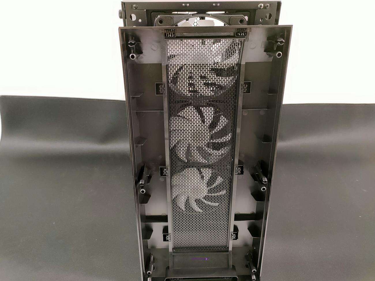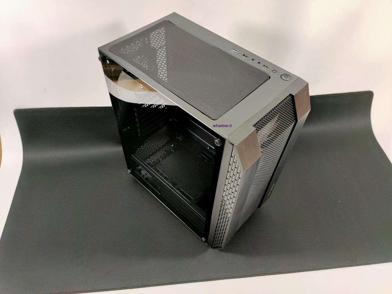 Przedni panel jest w większości pokryty siatką mesh. Otwory wentylacyjne znajdują się także z jego boku, co może wskazywać na dobry przepływ powietrza. Niestety w dalszym ciągu nie ma filtrów przeciwkurzowych na przodzie.