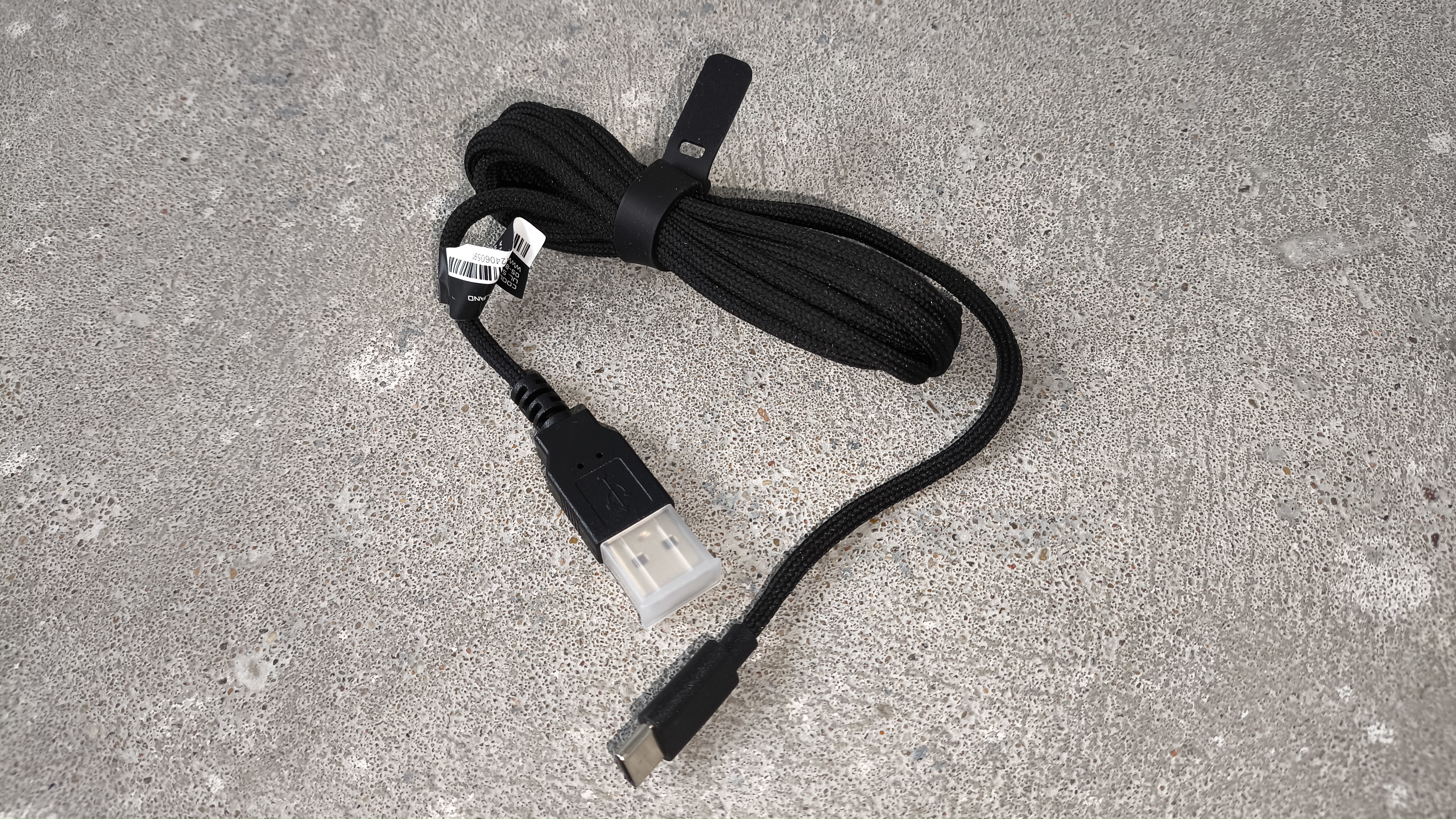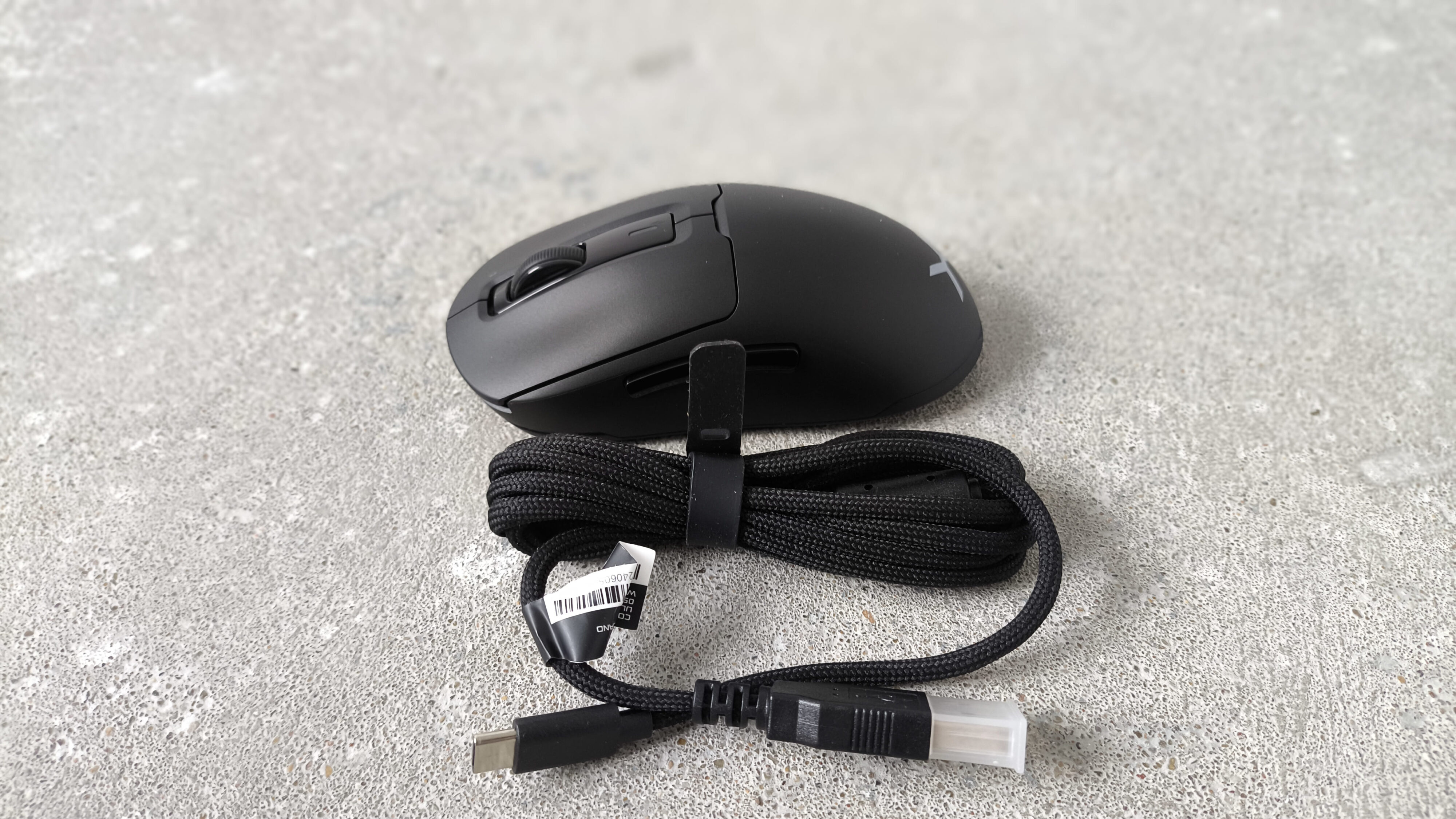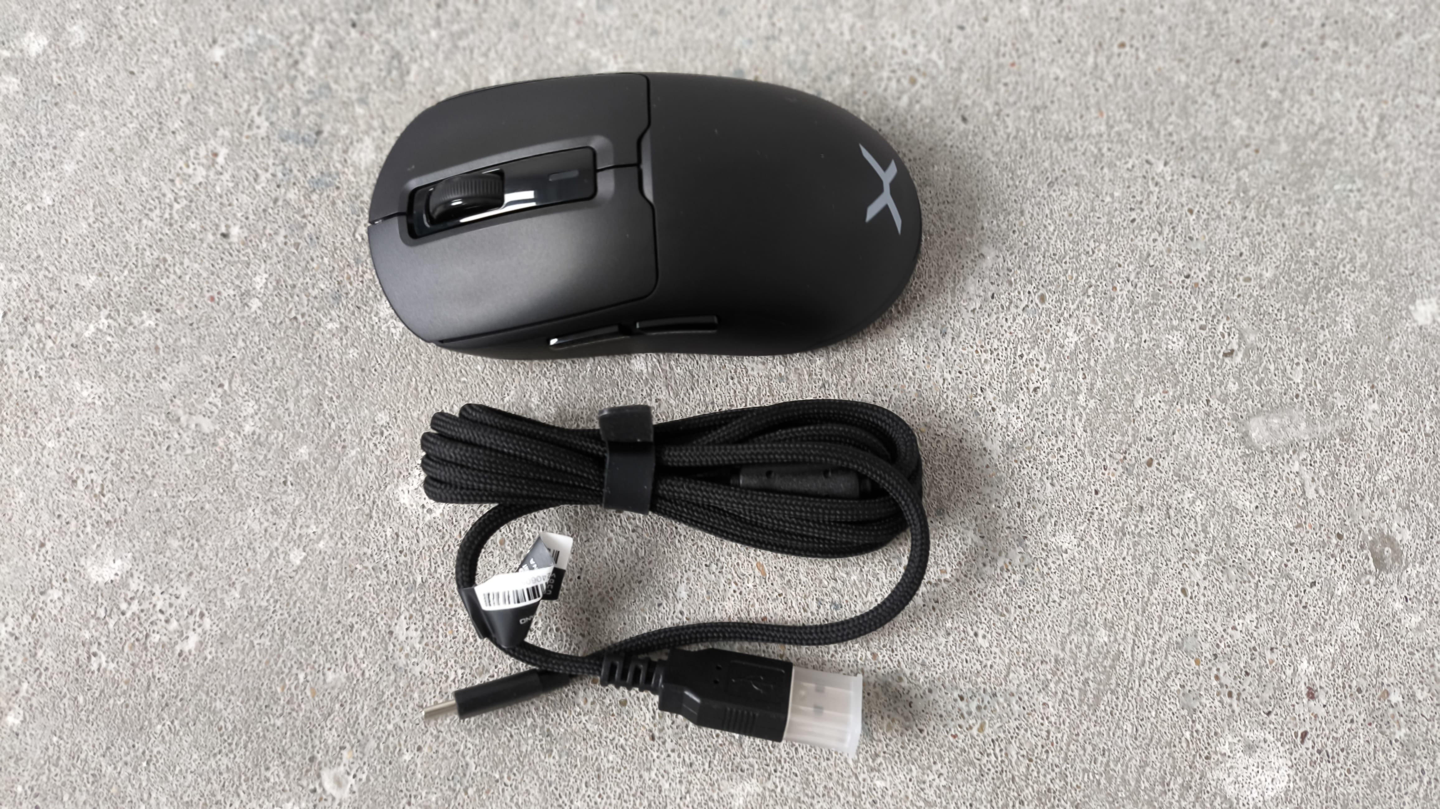 W środku poza samą myszką znajdziemy podstawowe wyposażenie, czyli odpinany przewód zasilający typu paracord oraz niewielki, ale solidny transmiter radiowy 2.4 GHz. Producent dołączył również podstawową dokumentację. Niestety, zabrakło dodatkowego kompletu ślizgaczy, co byłoby mile widzianym i praktycznym dodatkiem, szczególnie dla użytkowników dbających o długowieczność i komfort korzystania z gryzonia.