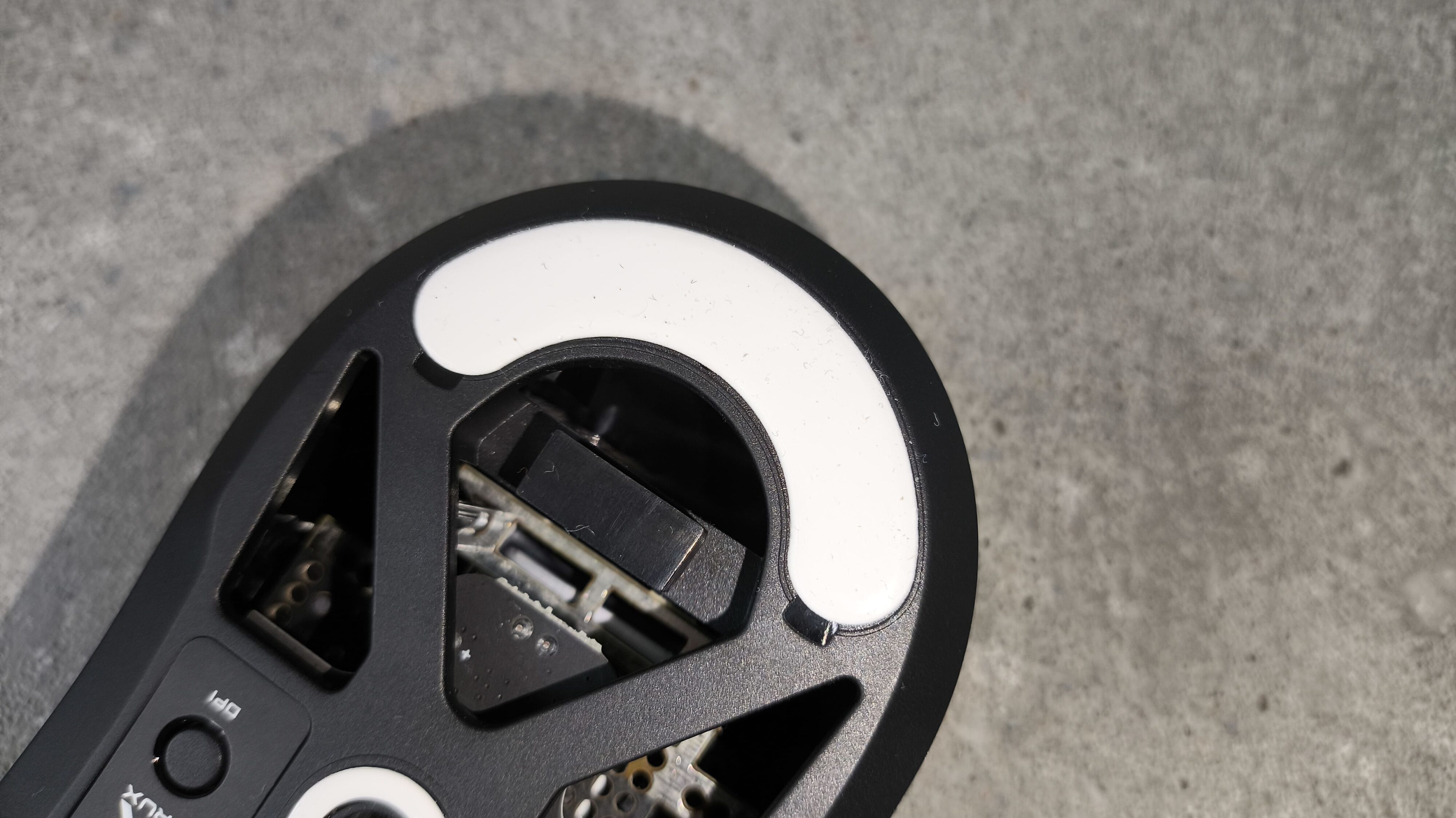 Ślizgacze wykonano z czystego PTFE (teflonu), co gwarantuje płynny, ale kontrolowany poślizg. Zestaw składa się z trzech elementów: dużego ślizgacza z przodu, długiego w kształcie banana na spodzie oraz pierścienia otaczającego sensor.