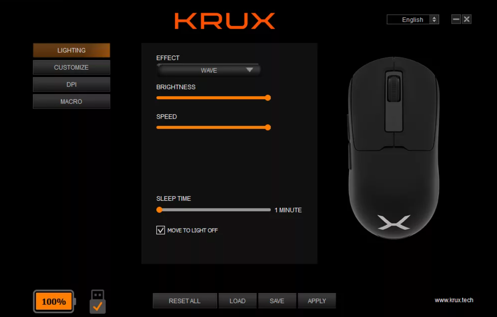 Myszkę Krux Plasma Wireless wyposażono w prosty, intuicyjny sterownik, niemal identyczny jak ten używany w testowanym przeze mnie jakiś czas temu modelu Genesis Zircon 660. Oprogramowanie pozwala na pełne dostosowanie sześciu przycisków, ustawienie DPI w zakresie od 200 do 12 000 z krokiem co 100, zmianę debounce time i częstotliwości odświeżania, a także tworzenie i edycję makr.