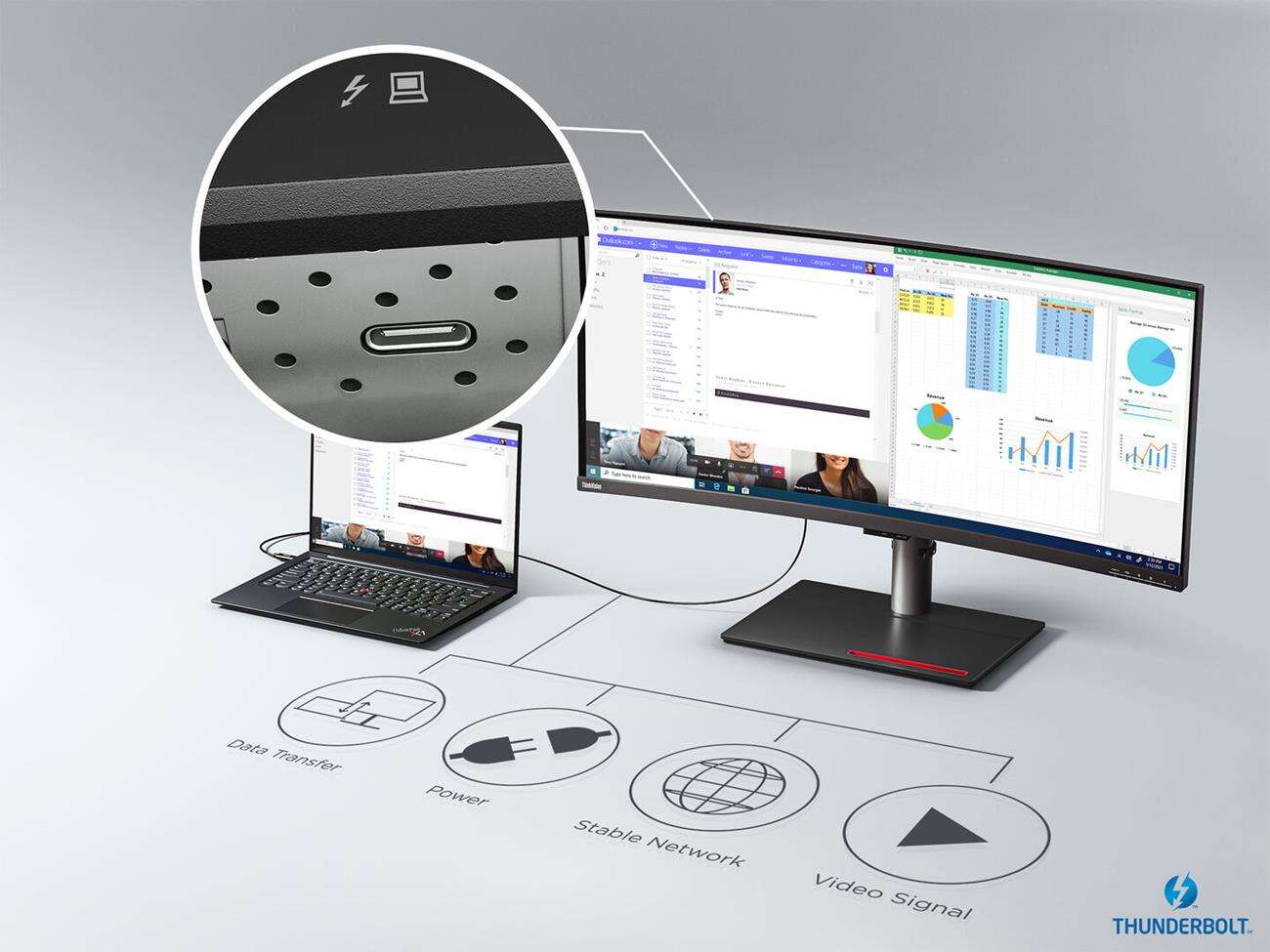 Lenovo ThinkVision P40w to też pierwszy na świecie monitor Thunderbolt 4 obsługujący Intel AMR. Zapewnia to stabilne i bezpieczne połączenie. Łatwiejsze też staje się zdalne zarządzanie czy konserwacja.