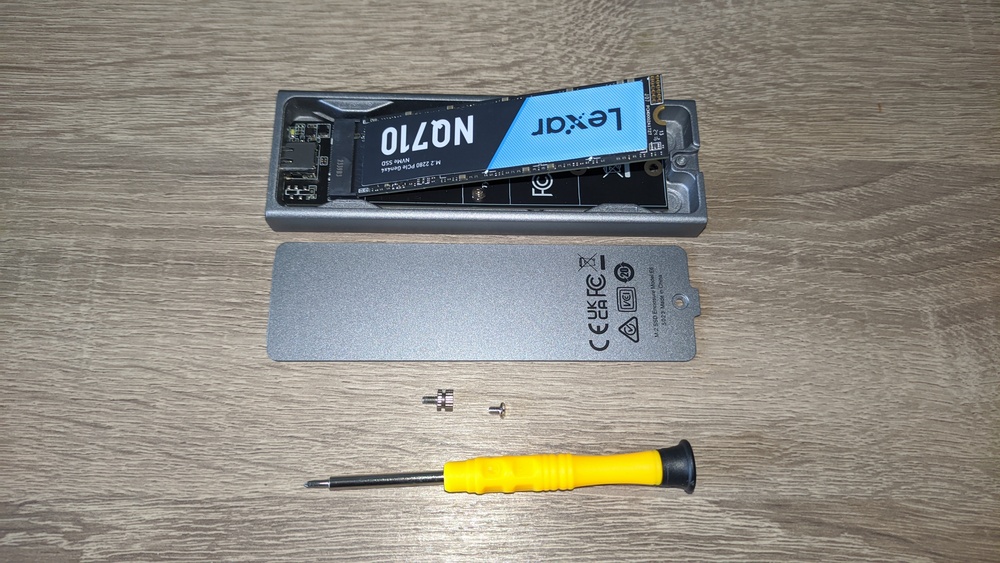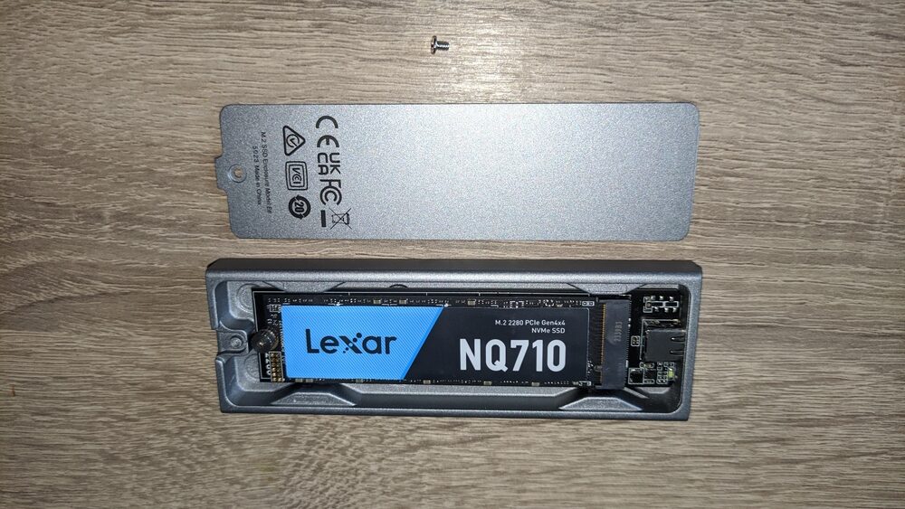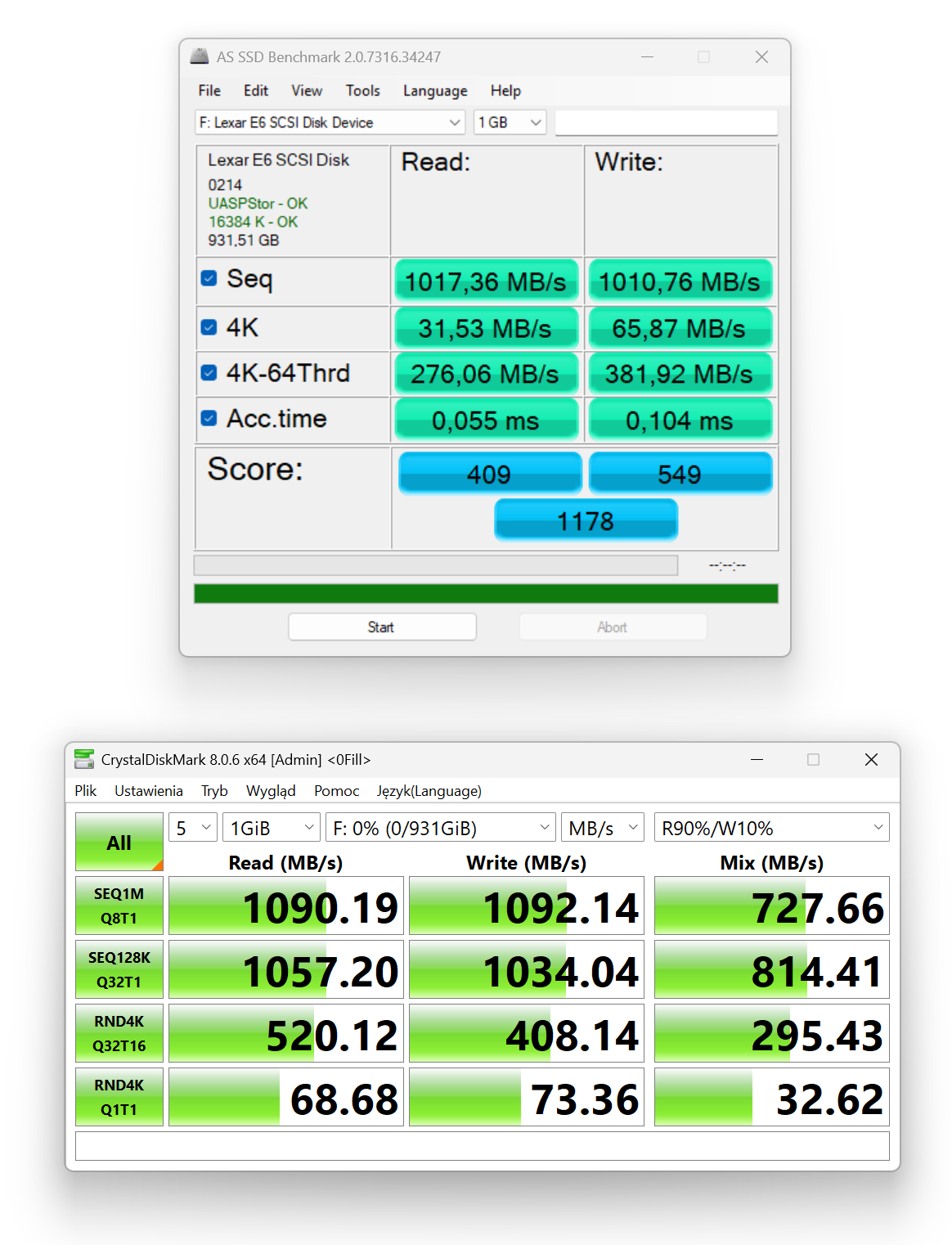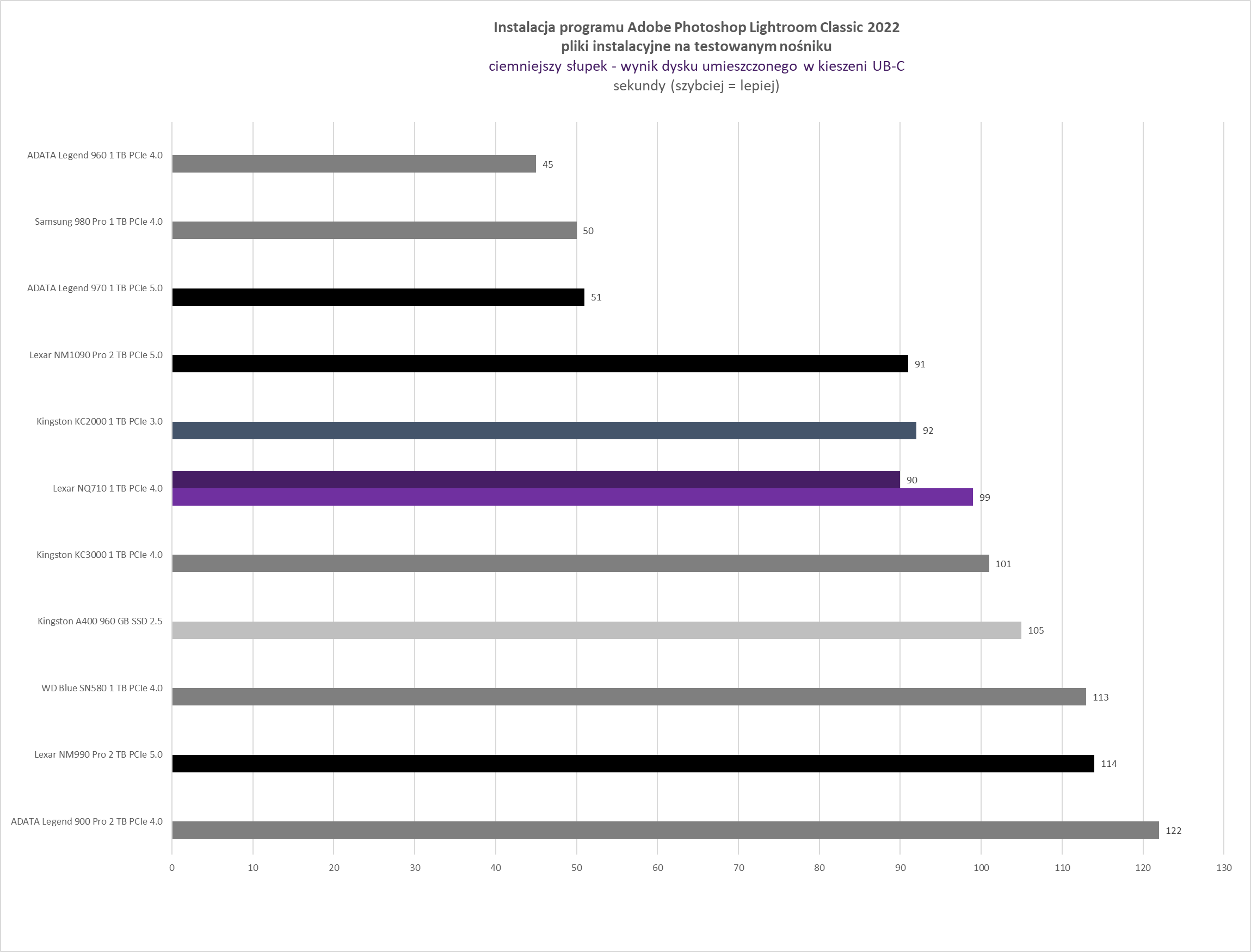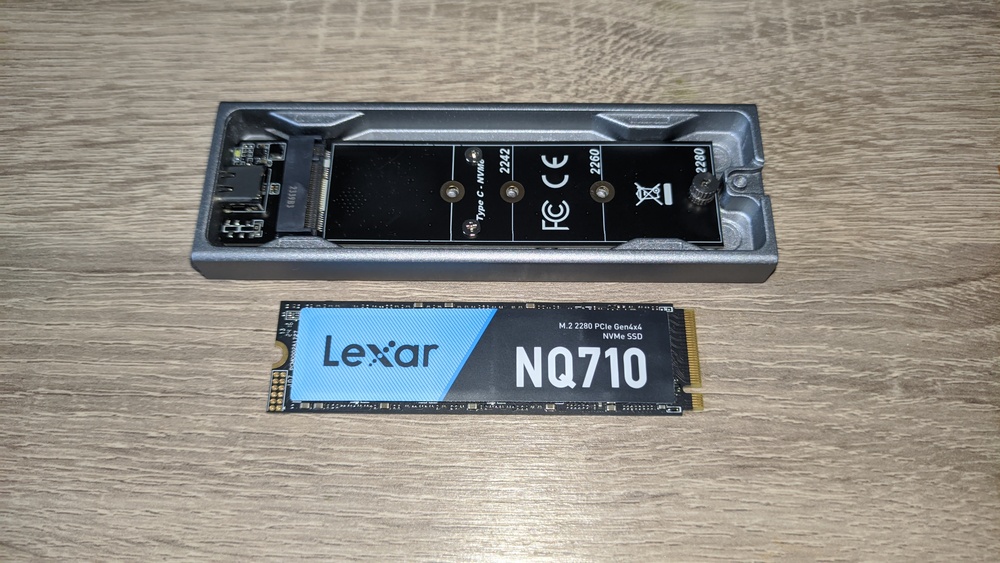 Warto jednak zaznaczyć, że po umieszczeniu dysku w kieszeni USB-C jego wydajność zostaje ograniczona do około 1000 MB/s zarówno w odczycie, jak i zapisie. Mimo to są to wciąż w pełni wystarczające wartości do zastosowań praktycznych – bez problemu można wykorzystywać taki zestaw jako przenośną bibliotekę gier czy programów.