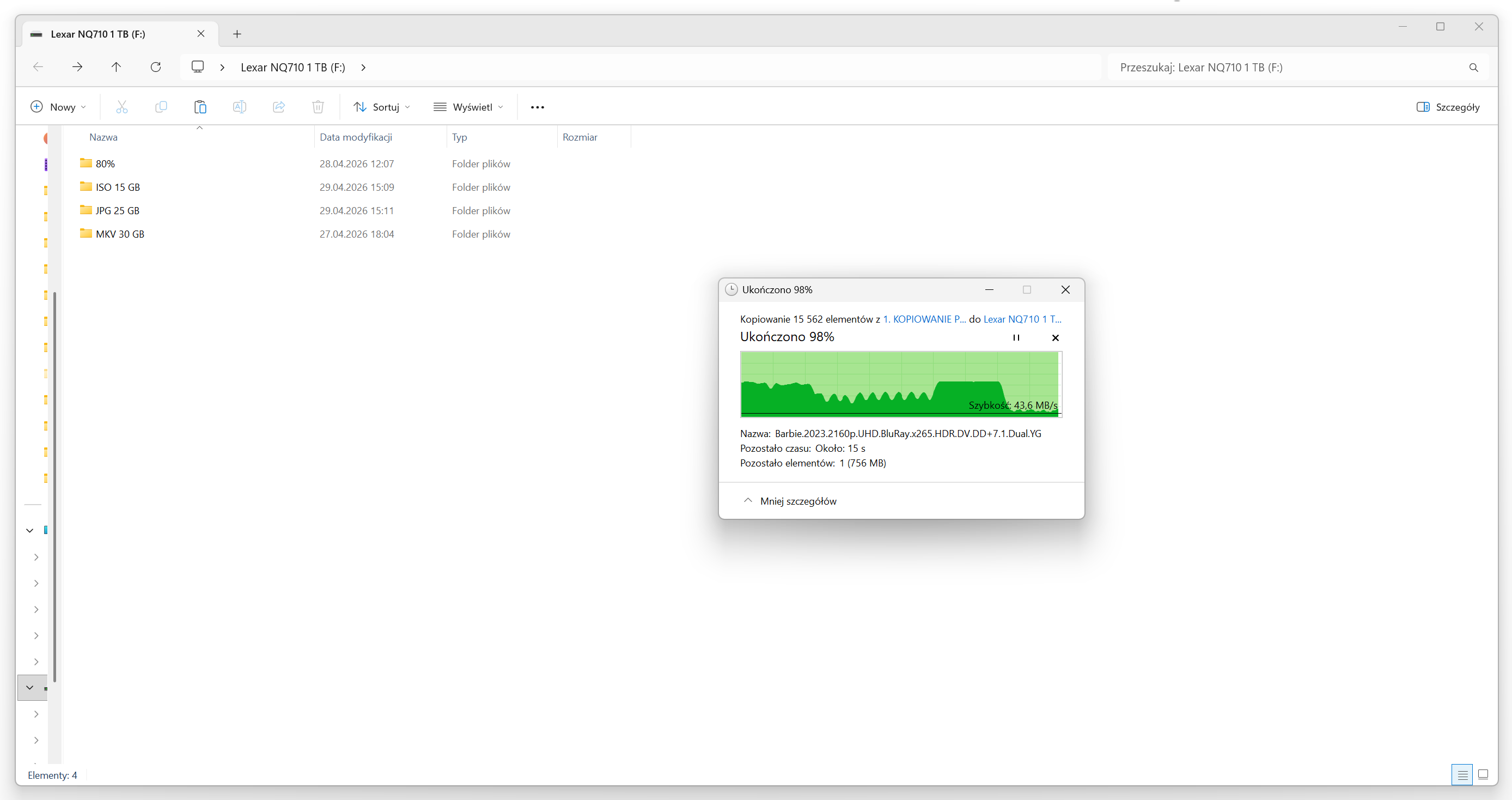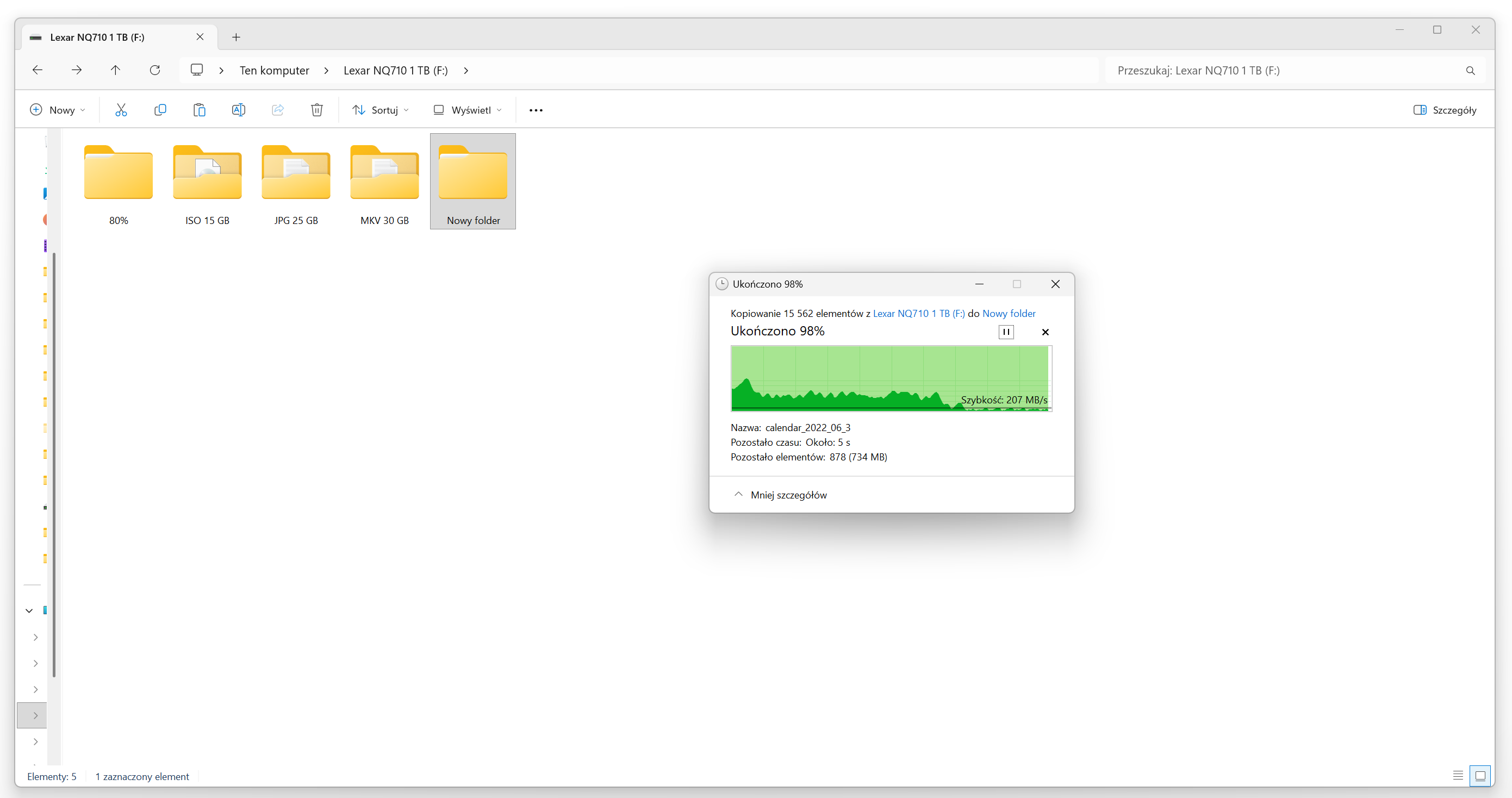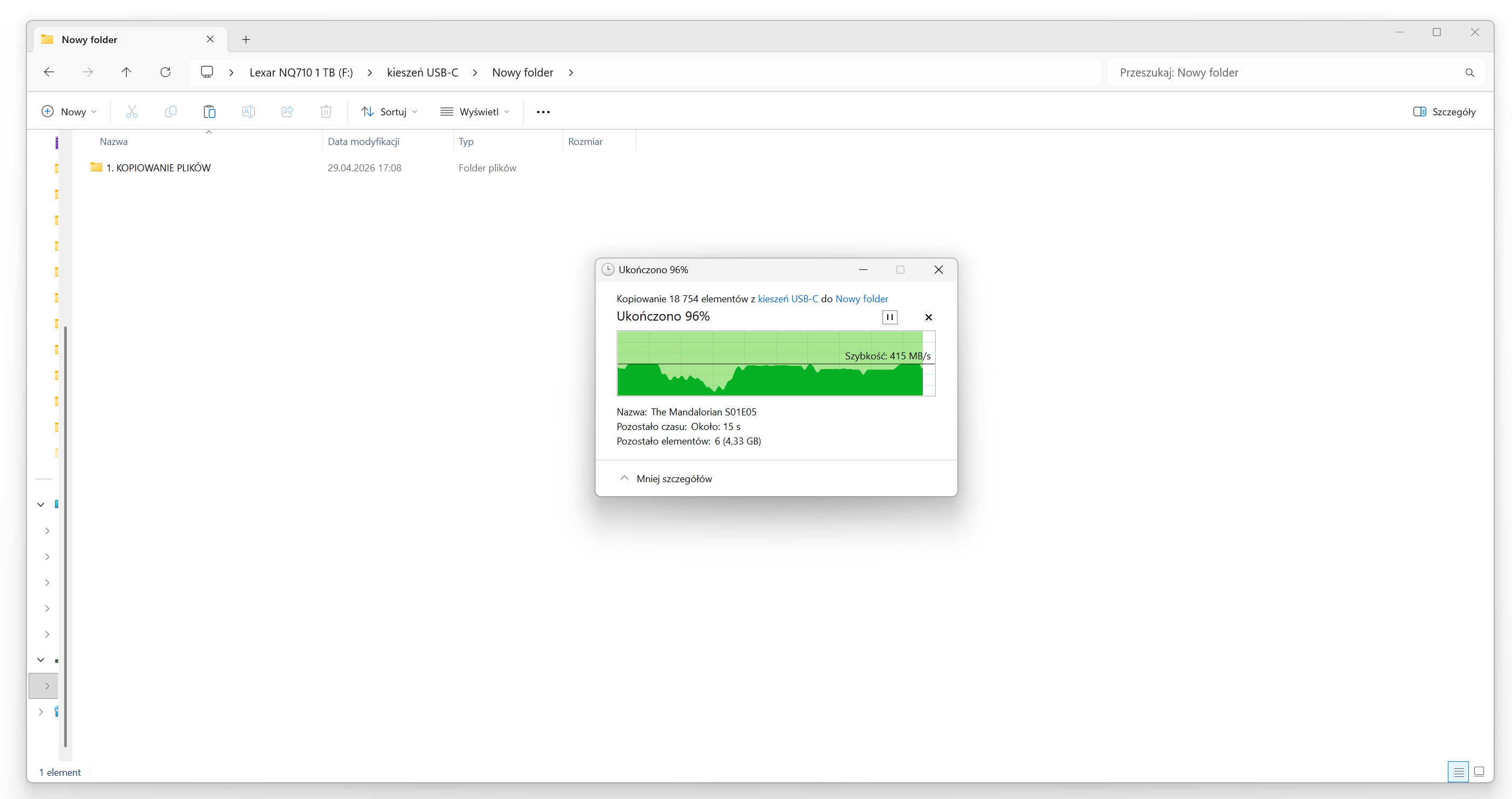 KOPIOWANIE PLIKÓW O WADZE 115 GB W OBRĘBIE TEJ SAMEJ PARTYCJI.