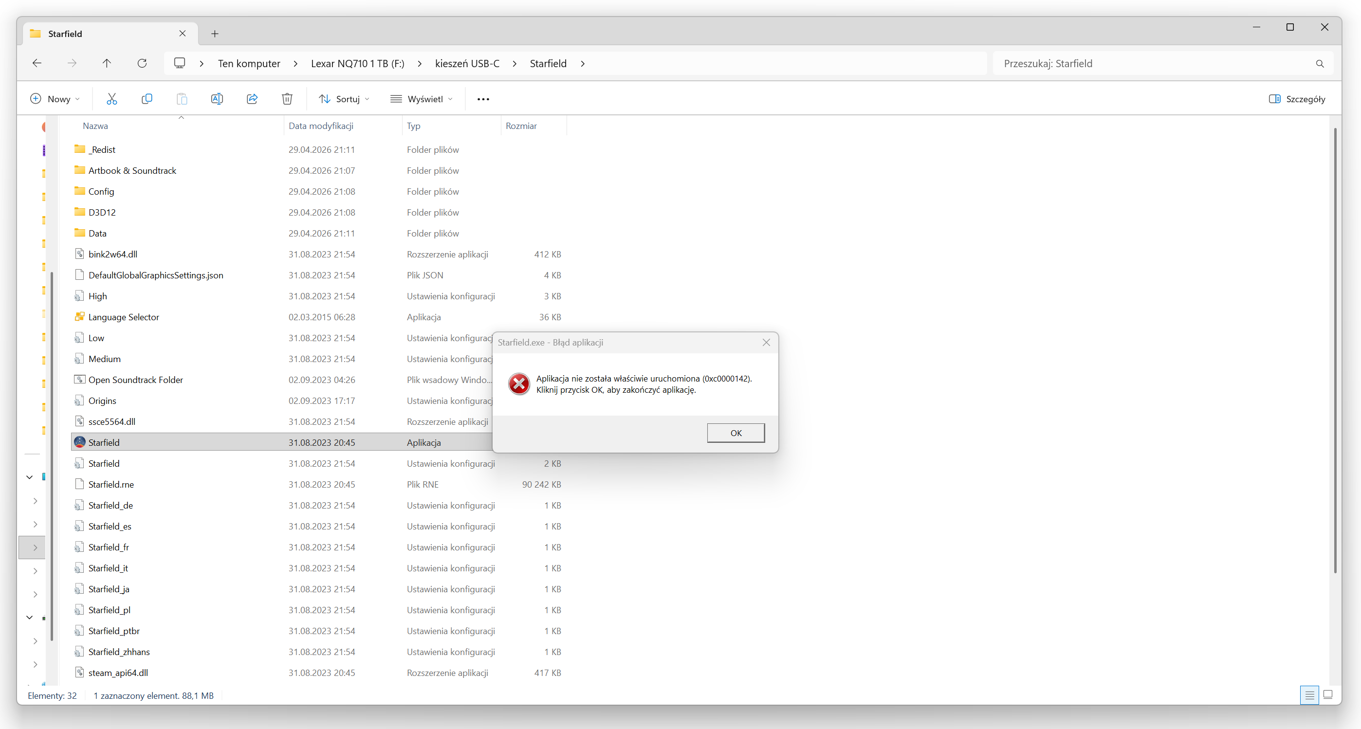 transfer realny w obrębie tej samej partycji (MB/s) – kopiowanie gry Starfield