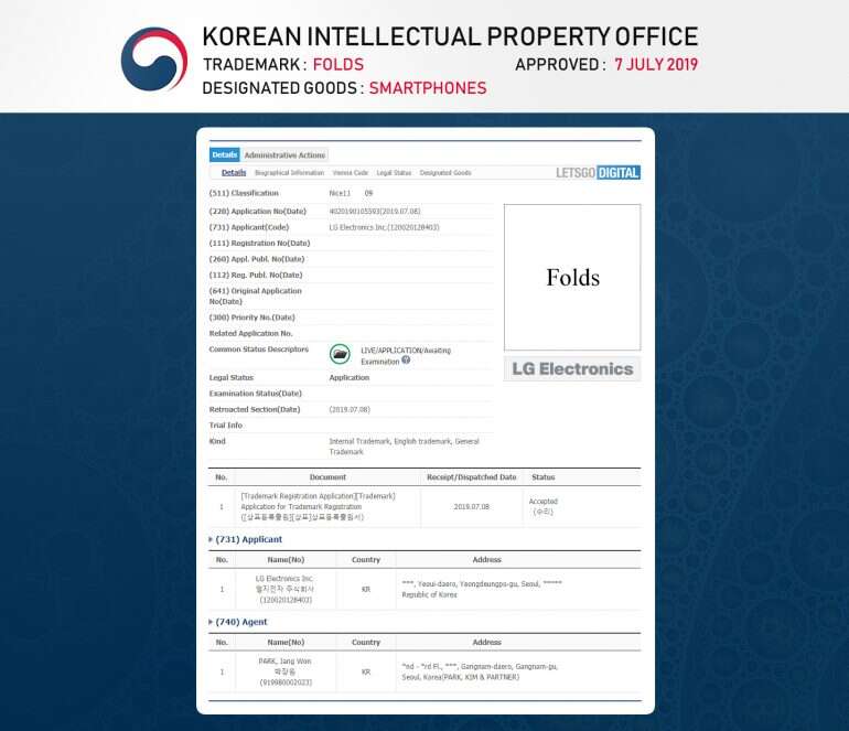 Wcześniej firma zarejestrowała takie nazwy jak: LG Flex, Foldi, Duplex i Bendi. Teraz dochodzą do nich nazwy Folds i Arc, które zgłoszone zostały w KIPRIS (Korean Intellectual Property Office). Wnioski są już zatwierdzone a nazwy chronione.